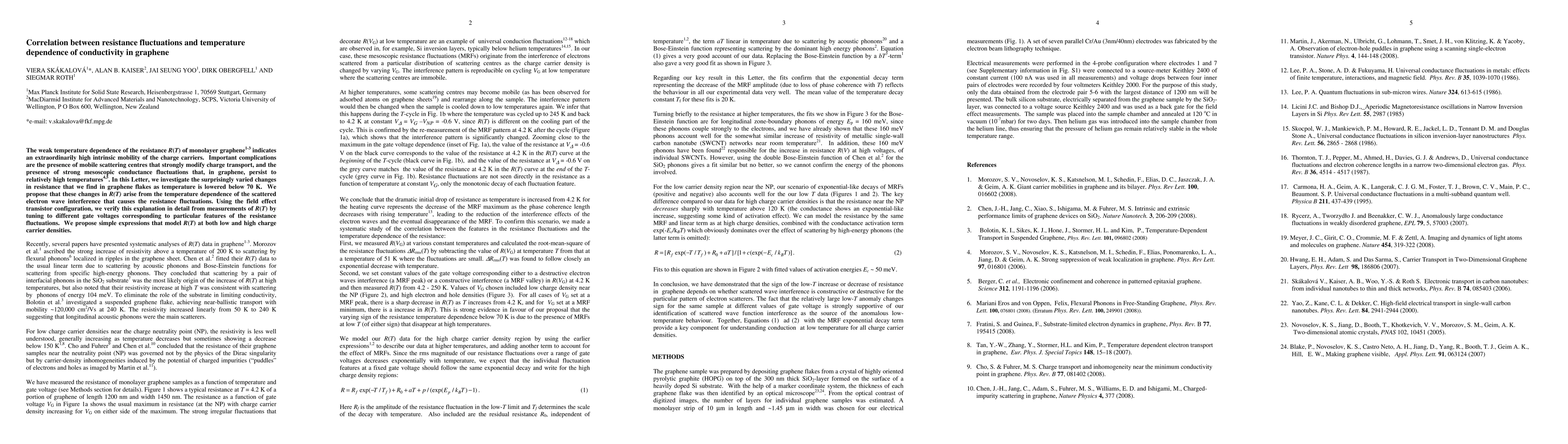 Graphene's resistance varies with temperature due to scattered electron wave interference, which causes fluctuations in conductivity. Researchers propose simple expressions to model this phenomenon using field effect transistor measurements.