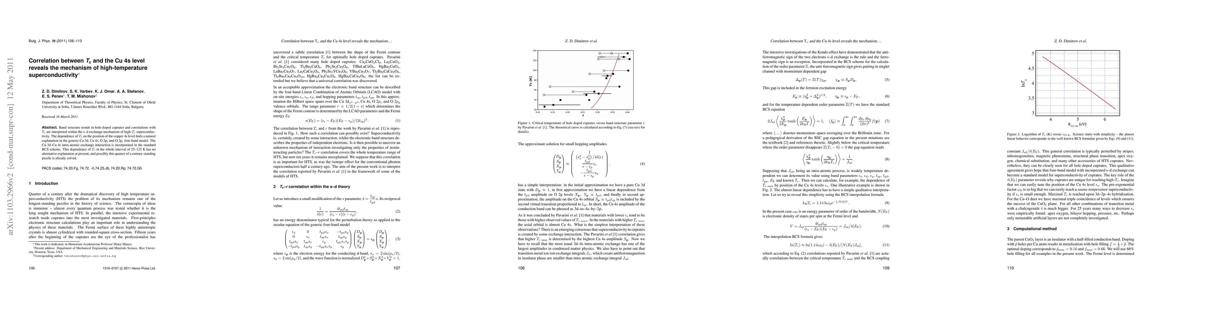 This paper proposes that the correlation between the critical temperature (T_c) of high-temperature superconductors and the Cu 4s level is explained by the s-d exchange mechanism, supported by a four-band model incorporating Cu 3d, Cu 4s, and O 2p orbitals. This model resolves the longstanding puzzle of T_c's dependence on the Cu 4s level across a wide temperature range.