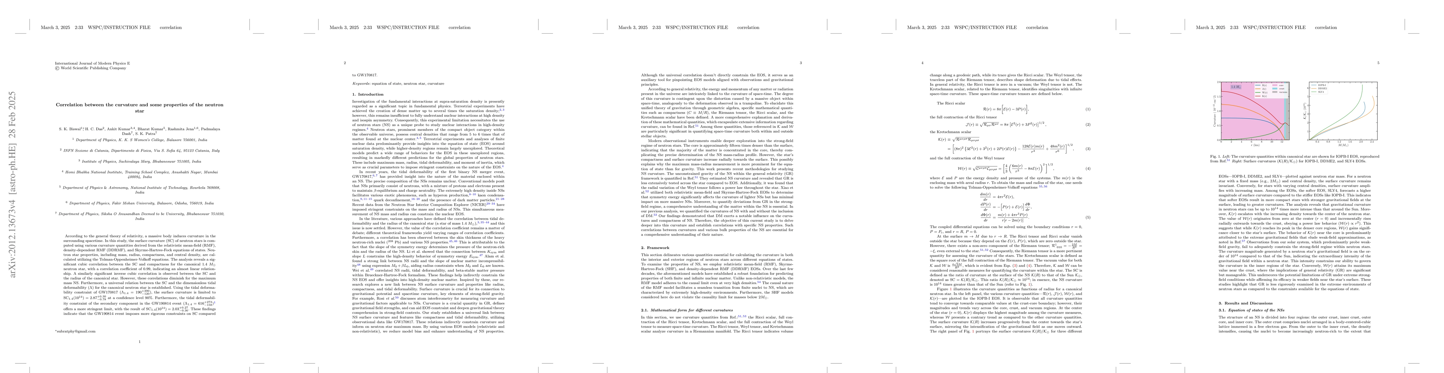 This paper investigates the correlation between neutron star surface curvature (SC) and properties such as compactness (C) and radius (R) using RMF and SHF models. It finds strong correlations between SC and C (0.992) and SC and R (0.982) for canonical neutron stars, visualized via a 7x7 heat map.