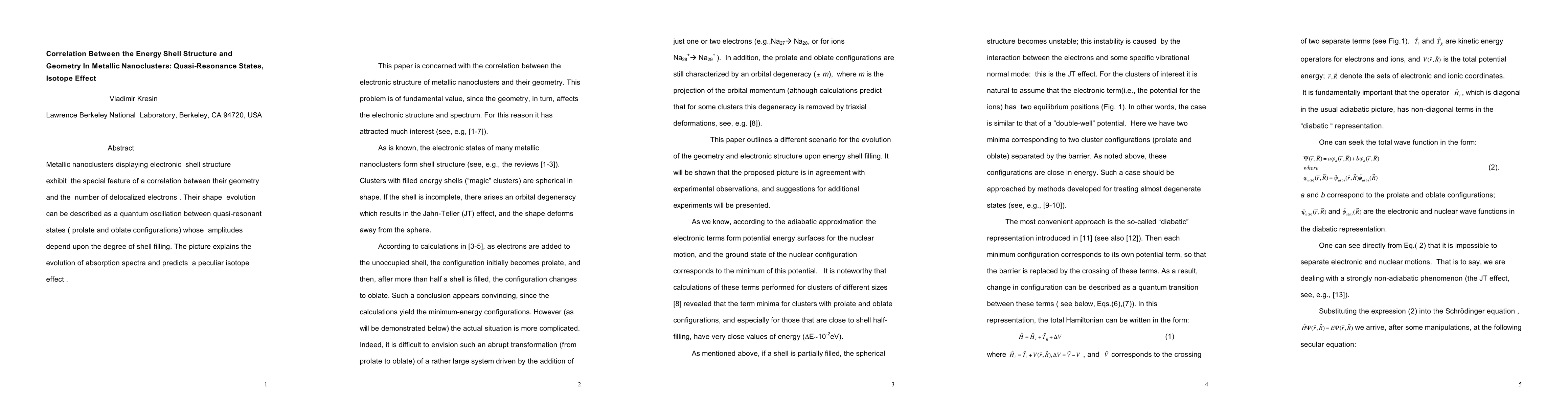 This paper explores the correlation between the geometry and energy shell structure in metallic nanoclusters, showing that their shape oscillates between prolate and oblate configurations based on electron shell filling, and predicts a unique isotope effect linked to these quasi-resonant states.