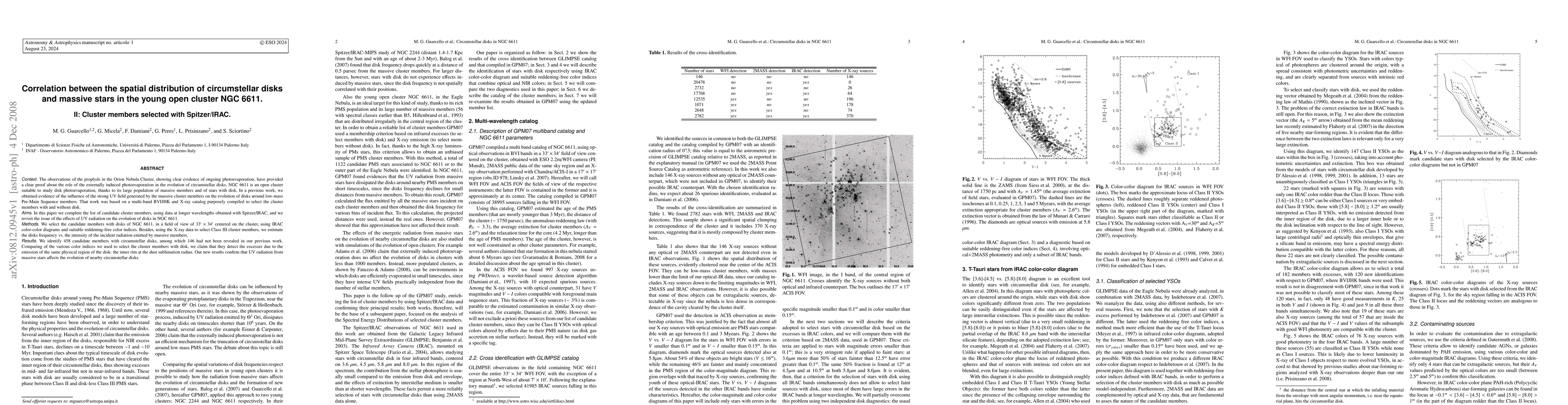 This study examines the relationship between circumstellar disks and massive stars in a young open cluster, NGC 6611, using Spitzer/IRAC data. It confirms that UV radiation from massive stars affects the evolution of nearby disks.