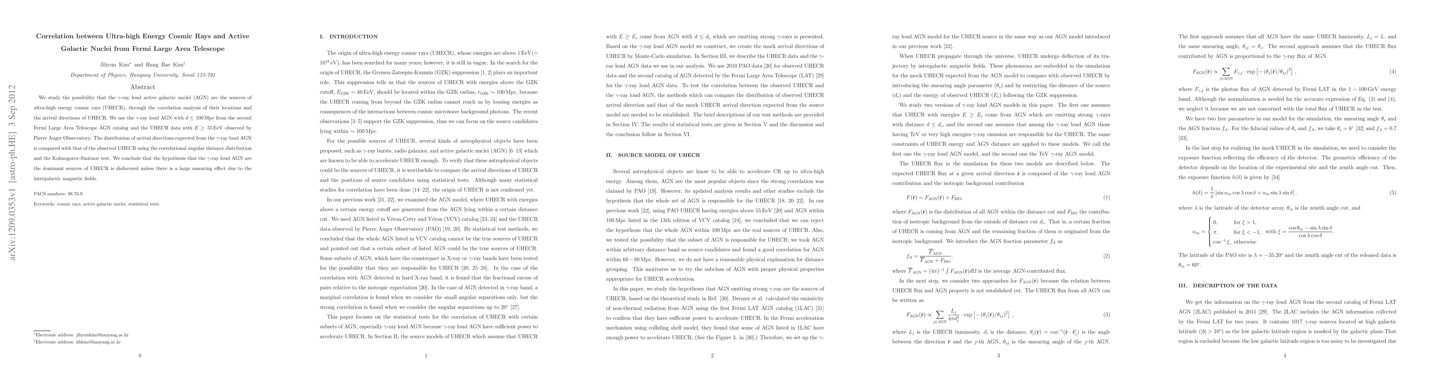This study investigates the correlation between ultra-high energy cosmic rays (UHECR) and $\gamma$-ray loud active galactic nuclei (AGN) using data from the Fermi Large Area Telescope and Pierre Auger Observatory. The analysis disfavors AGN as the primary source of UHECR unless significant smearing effects from intergalactic magnetic fields are considered.