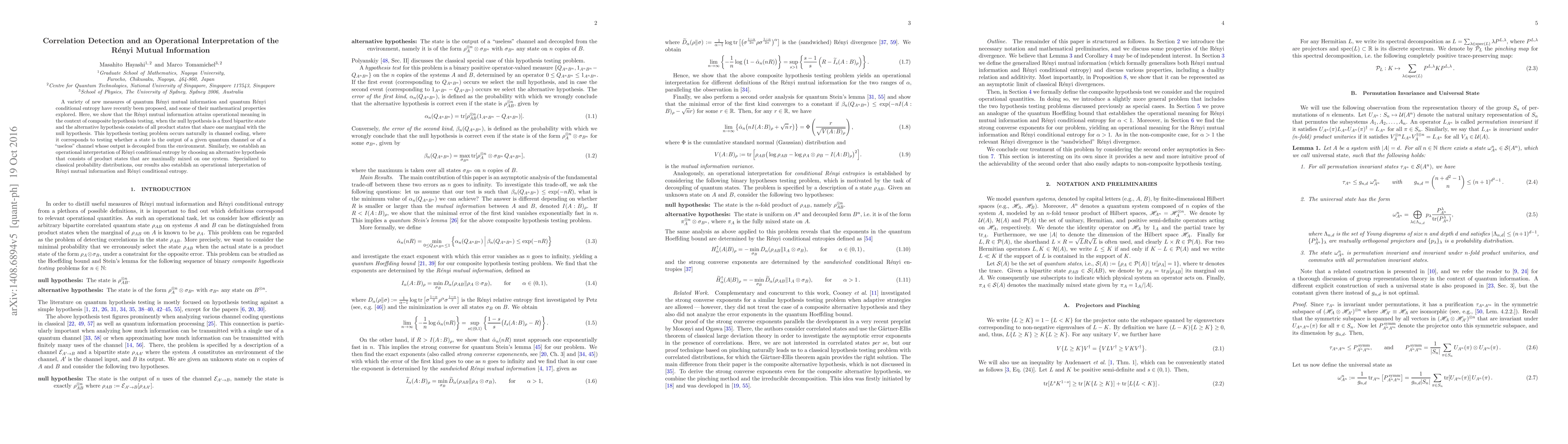 This paper proposes new measures of quantum Renyi mutual information and conditional entropy, demonstrating their operational significance in composite hypothesis testing scenarios. It interprets these measures in the context of channel coding, where they determine whether a state is from a given quantum channel or a 'useless' channel.