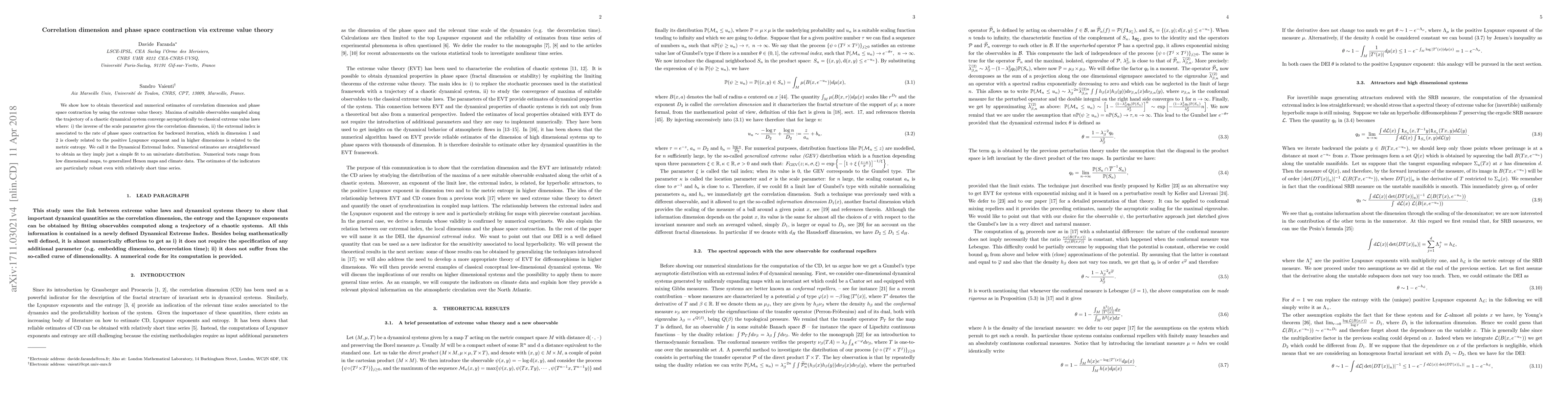 Researchers used extreme value theory to derive a new method for analyzing chaotic systems, allowing for the calculation of correlation dimension, entropy, and Lyapunov exponents without requiring additional parameters or suffering from the curse of dimensionality.