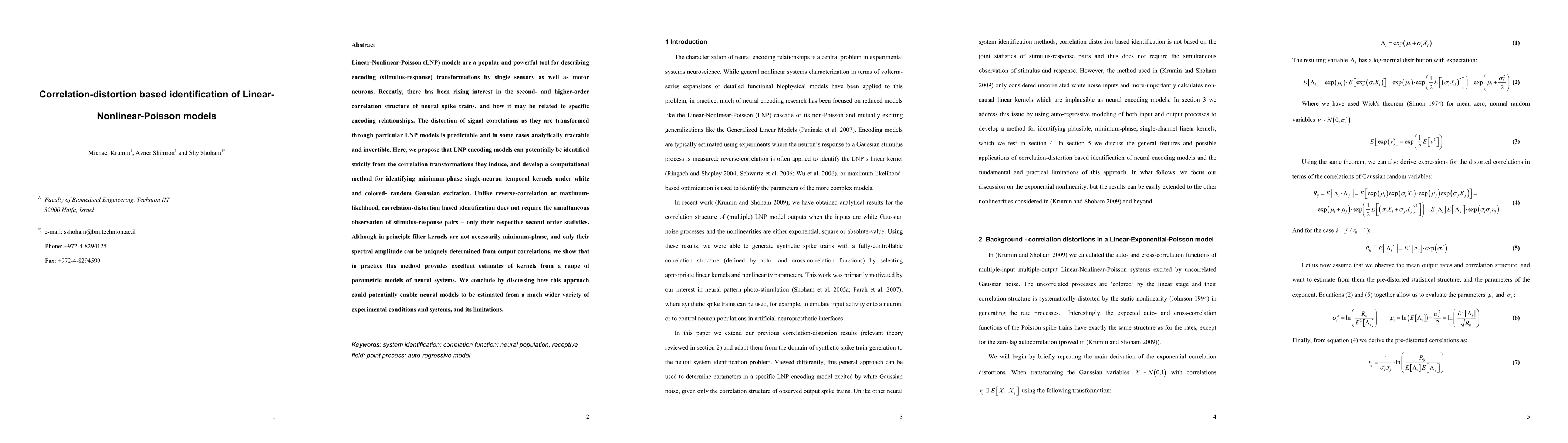 Researchers propose a new method to identify Linear-Nonlinear-Poisson models from their correlation transformations, allowing for estimation from a wider variety of experimental conditions.