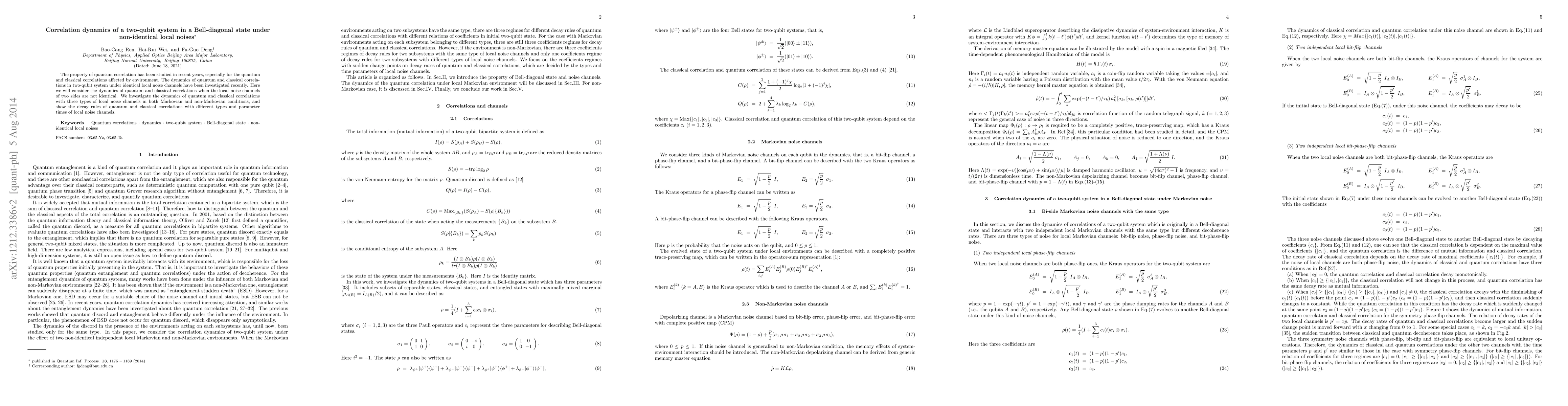 This paper examines the dynamics of quantum and classical correlations in a two-qubit system under non-identical local noise channels, analyzing the effects of three types of noise in both Markovian and non-Markovian conditions, and detailing the decay rules for these correlations.