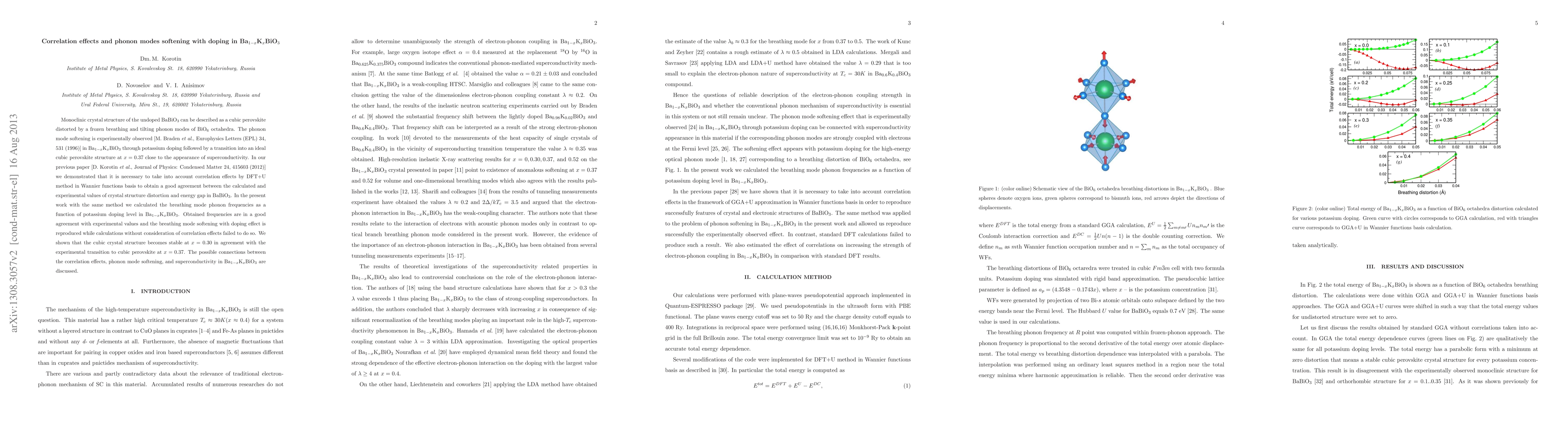 This paper investigates the phonon mode softening and structural transition in Ba1-xKxBiO3 with potassium doping using DFT+U calculations. The study finds that correlation effects are crucial for accurately predicting phonon frequencies and structural changes, which are in good agreement with experimental observations.