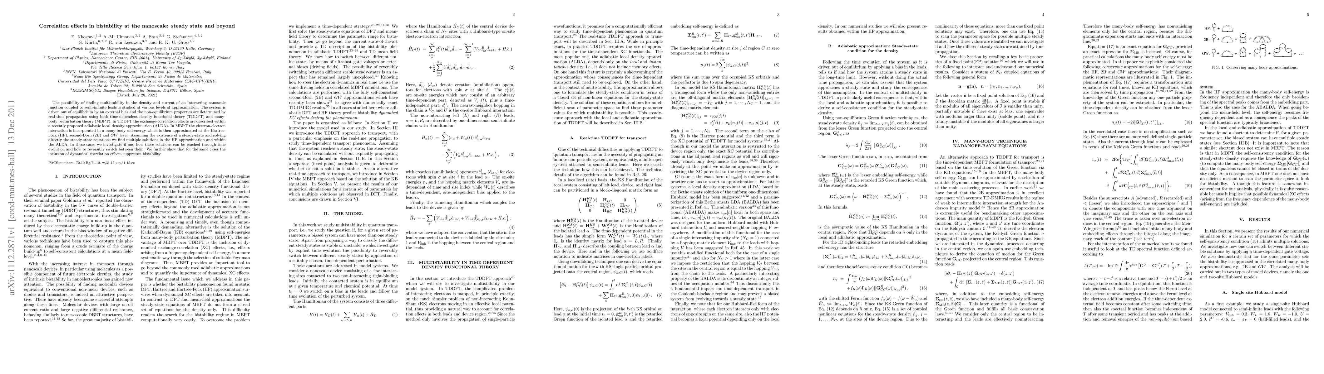 The possibility of finding multistability in the density and current of an interacting nanoscale junction coupled to semi-infinite leads is studied at various levels of approximation. The system is driven out of equilibrium by an external bias and the non-equilibrium properties are determined by real-time propagation using both time-dependent density functional theory (TDDFT) and many-body perturbation theory (MBPT). In TDDFT the exchange-correlation effects are described within a recently proposed adiabatic local density approximation (ALDA). In MBPT the electron-electron interaction is incorporated in a many-body self-energy which is then approximated at the Hartree-Fock (HF), second-Born (2B) and GW level. Assuming the existence of a steady-state and solving directly the steady-state equations we find multiple solutions in the HF approximation and within the ALDA. In these cases we investigate if and how these solutions can be reached through time evolution and how to reversibly switch between them. We further show that for the same cases the inclusion of dynamical correlation effects suppresses bistability.