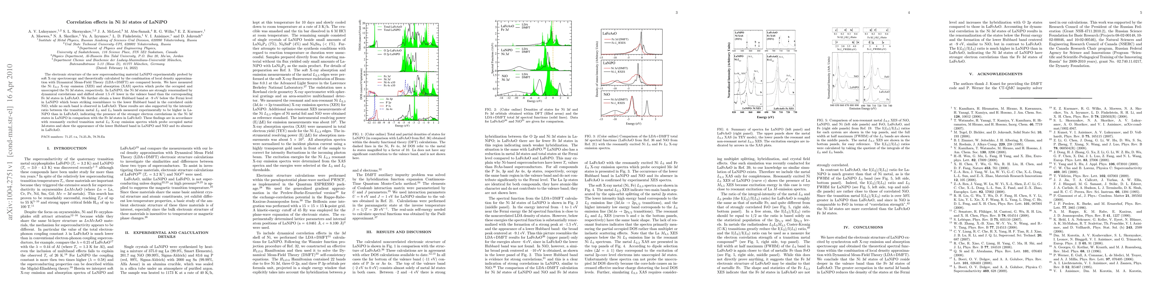The electronic structure of the new superconducting material LaNiPO experimentally probed by soft X-ray spectroscopy and theoretically calculated by the combination of local density approximation with Dynamical Mean-Field Theory (LDA+DMFT) are compared herein. We have measured the Ni L2,3 X-ray emission (XES) and absorption (XAS) spectra which probe the occupied and unoccupied the Ni 3d states, respectively. In LaNiPO, the Ni 3d states are strongly renormalized by dynamical correlations and shifted about 1.5 eV lower in the valence band than the corresponding Fe 3d states in LaFeAsO. We further obtain a lower Hubbard band at -9 eV below the Fermi level in LaNiPO which bears striking resemblance to the lower Hubbard band in the correlated oxide NiO, while no such band is observed in LaFeAsO. These results are also supported by the intensity ratio between the transition metal L2 and L3 bands measured experimentally to be higher in LaNiPO than in LaFeAsO, indicating the presence of the stronger electron correlations in the Ni 3d states in LaNiPO in comparison with the Fe 3d states in LaFeAsO. These findings are in accordance with resonantly excited transition metal L3 X-ray emission spectra which probe occupied metal 3d-states and show the appearance of the lower Hubbard band in LaNiPO and NiO and its absence in LaFeAsO.