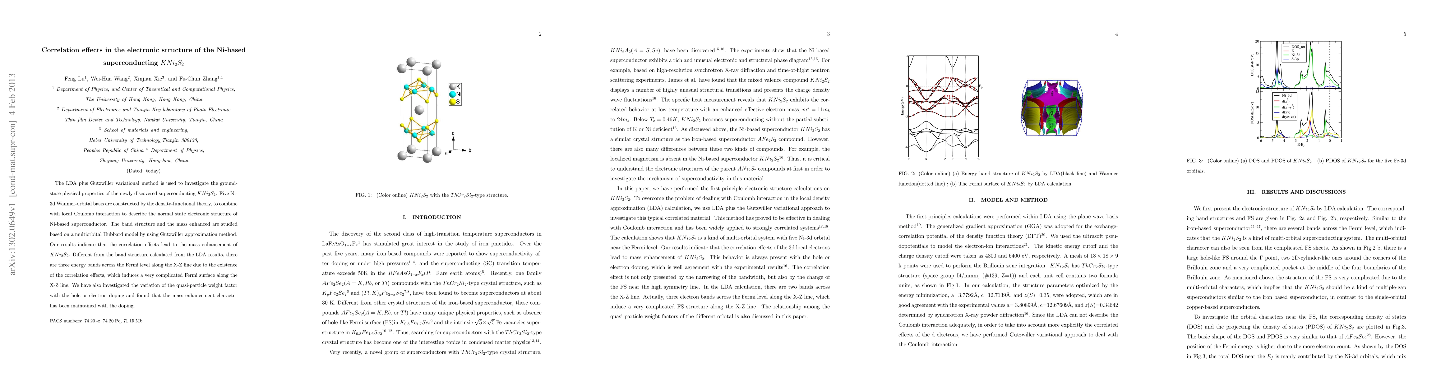 This study uses the LDA plus Gutzwiller method to explore the electronic structure of the Ni-based superconductor KNi2S2, revealing significant mass enhancement due to correlation effects. The research shows a complex Fermi surface and maintains mass enhancement characteristics even with doping.
