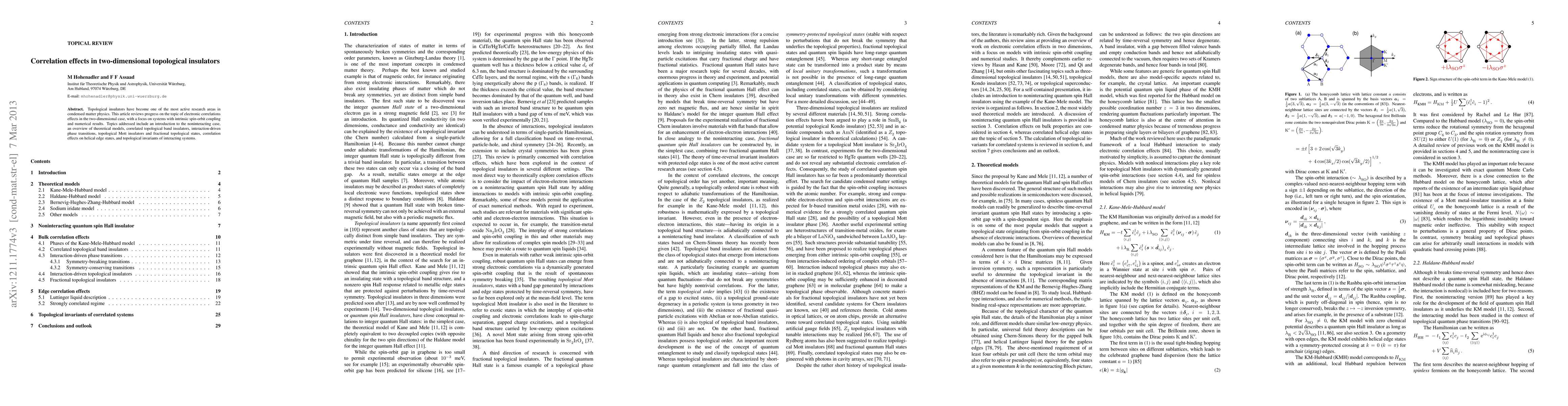 This paper reviews the impact of electronic correlations in two-dimensional topological insulators, focusing on systems with intrinsic spin-orbit coupling. It discusses theoretical models, interaction-driven phase transitions, and topological invariants, highlighting correlated topological band insulators, topological Mott insulators, and fractional topological states.