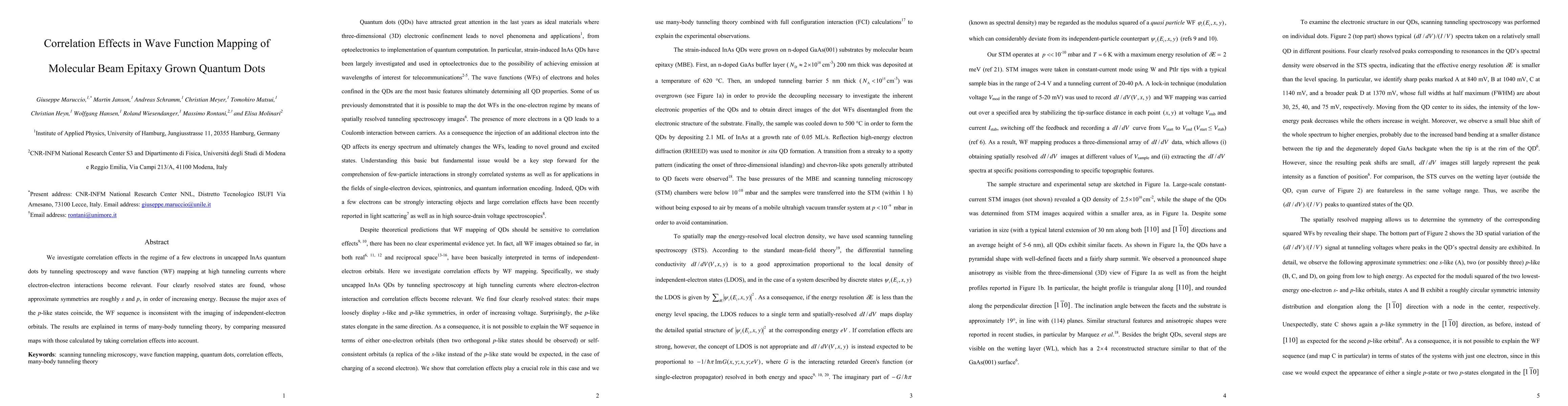 This study explores electron-electron interactions in InAs quantum dots using tunneling spectroscopy and wave function mapping, revealing four distinct states. The findings challenge the assumption of independent-electron orbitals, suggesting that correlation effects significantly influence the wave function structure.