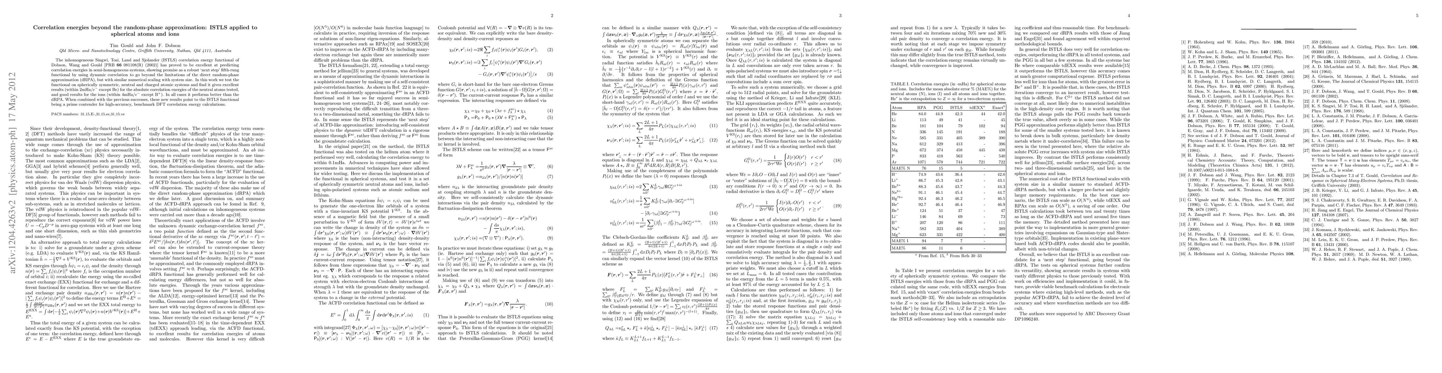The inhomogeneous Singwi, Tosi, Land and Sjolander (ISTLS) correlation energy functional of Dobson, Wang and Gould [PRB {\bf 66} 081108(R) (2008)] has proved to be excellent at predicting correlation energies in semi-homogeneous systems, showing promise as a robust `next step' fifth-rung functional by using dynamic correlation to go beyond the limitations of the direct random-phase approximation (dRPA), but with similar numerical scaling with system size. In this work we test the functional on fourteen spherically symmetric, neutral and charged atomic systems and find it gives excellent results (within 2mHa/$e^-$ except Be) for the absolute correlation energies of the neutral atoms tested, and good results for the ions (within 4mHa/$e^-$). In all cases it performs better than the dRPA. When combined with the previous successes, these new results point to the ISTLS functional being a prime contender for high-accuracy, benchmark DFT correlation energy calculations.