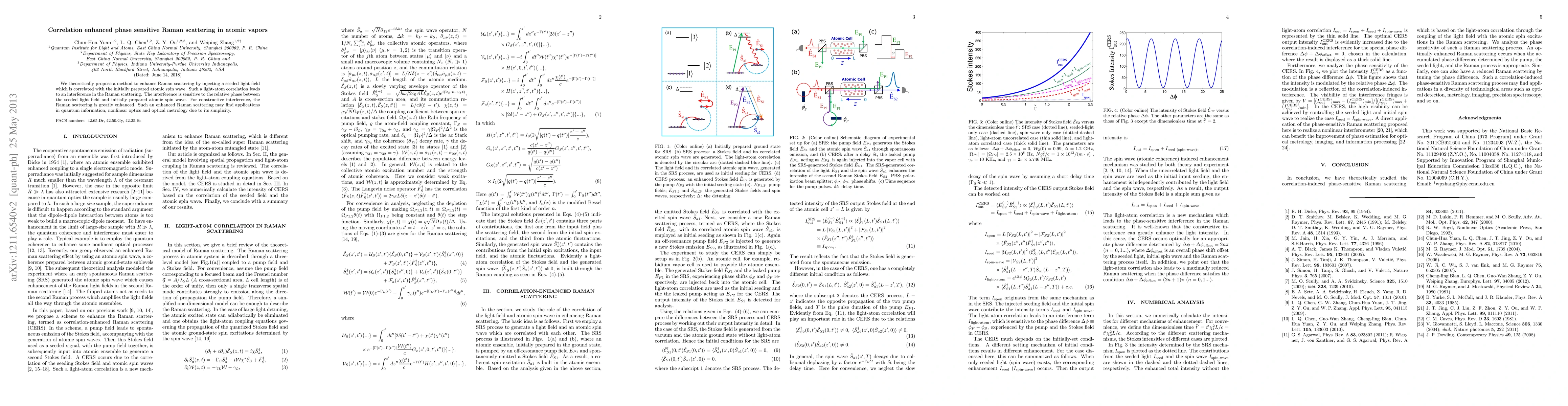 This paper proposes a method to significantly enhance Raman scattering in atomic vapors by correlating a seeded light field with the initial atomic spin wave, leading to phase-sensitive interference that can greatly amplify the scattering. This technique has potential applications in quantum information, nonlinear optics, and optical metrology.