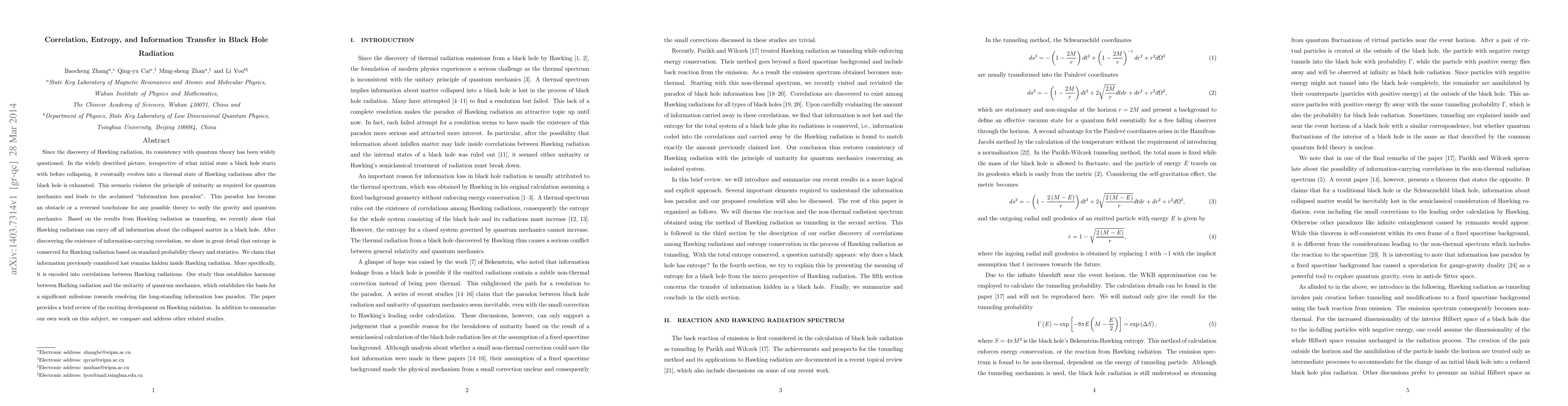 This paper resolves the information loss paradox in black hole radiation by demonstrating that Hawking radiation retains all information from the collapsed matter through hidden correlations, thus preserving the unitarity of quantum mechanics and entropy conservation. The study provides a significant step towards unifying gravity and quantum mechanics by showing that information is encoded in the correlations between Hawking radiations.