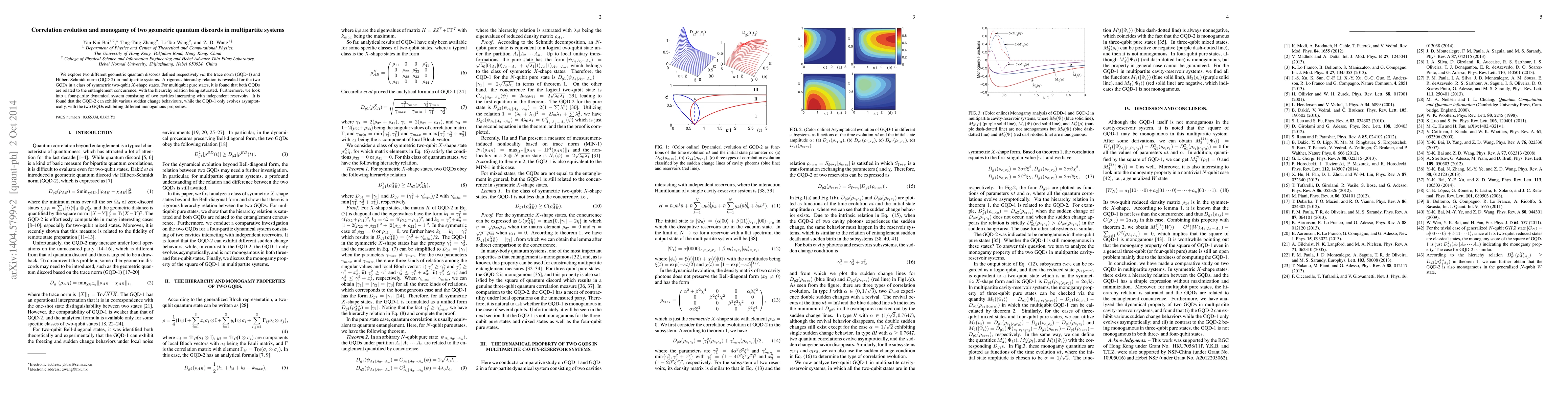 This paper investigates two geometric quantum discords (GQD-1 and GQD-2) in multipartite systems, revealing a hierarchy between them in symmetric two-qubit states and their relation to entanglement concurrence. It also examines a four-partite system, finding distinct evolution and monogamy properties for GQD-1 and GQD-2.