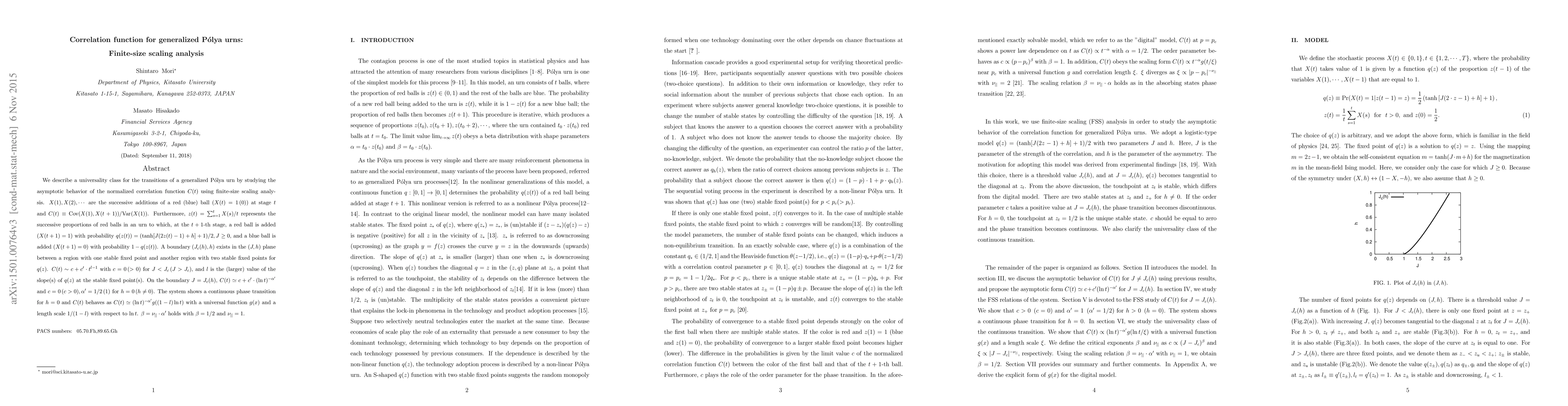 A study on generalized Pólya urns reveals a continuous phase transition with a critical exponent of 1/2 and a universal correlation function that behaves like t^(-0.5)g((1-l)logt), where l is the slope of q(z) at stable fixed points.