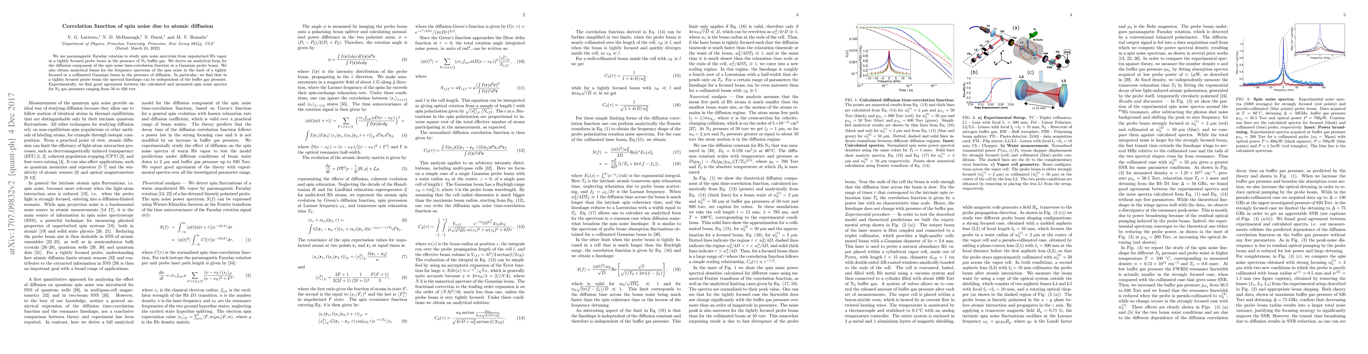 We use paramagnetic Faraday rotation to study spin noise spectrum from unpolarized Rb vapor in a tightly focused probe beam in the presence of N$_2$ buffer gas. We derive an analytical form for the diffusion component of the spin noise time-correlation function in a Gaussian probe beam. We also obtain analytical forms for the frequency spectrum of the spin noise in the limit of a tightly focused or a collimated Gaussian beam in the presence of diffusion. In particular, we find that in a tightly focused probe beam the spectral lineshape can be independent of the buffer gas pressure. Experimentally, we find good agreement between the calculated and measured spin noise spectra for N$_2$ gas pressures ranging from 56 to 820 torr.