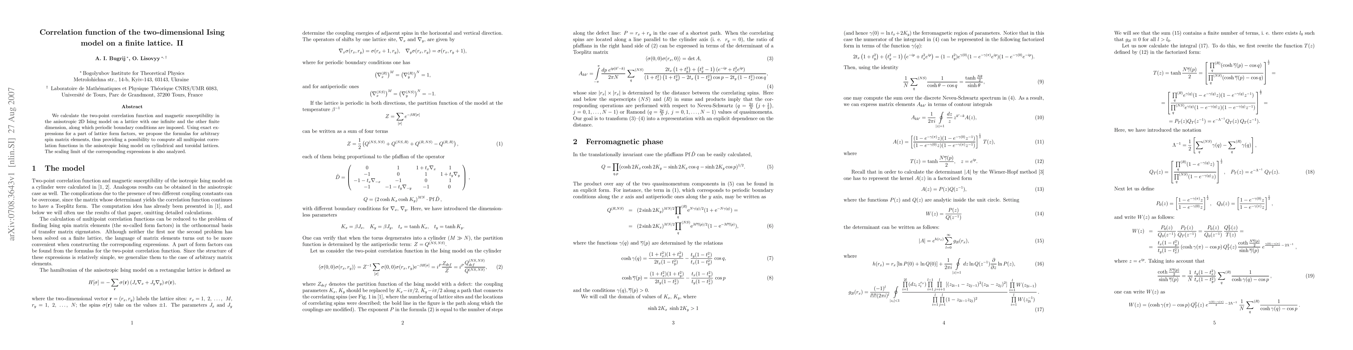 This paper calculates the two-point correlation function and magnetic susceptibility in an anisotropic 2D Ising model on a lattice with one infinite and one finite dimension. It proposes formulas for arbitrary spin matrix elements, enabling the computation of multipoint correlation functions in cylindrical and toroidal lattices, and analyzes their scaling limits.