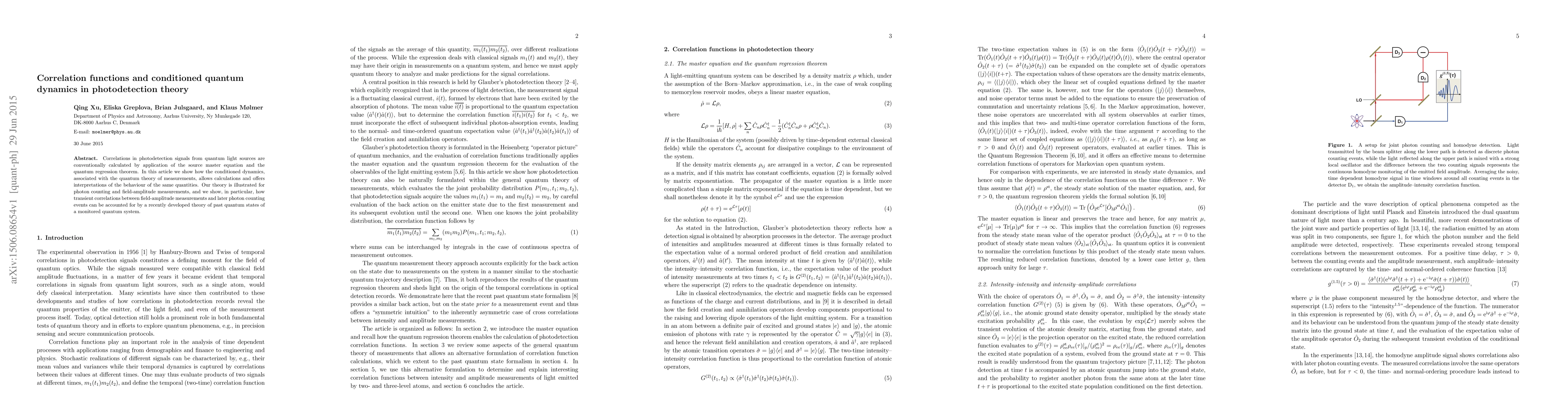 Correlations in photodetection signals from quantum light sources are conventionally calculated by application of the source master equation and the quantum regression theorem. In this article we show how the conditioned dynamics, associated with the quantum theory of measurements, allows calculations and offers interpretations of the behaviour of the same quantities. Our theory is illustrated for photon counting and field-amplitude measurements, and we show, in particular, how transient correlations between field-amplitude measurements and later photon counting events can be accounted for by a recently developed theory of past quantum states of a monitored quantum system.