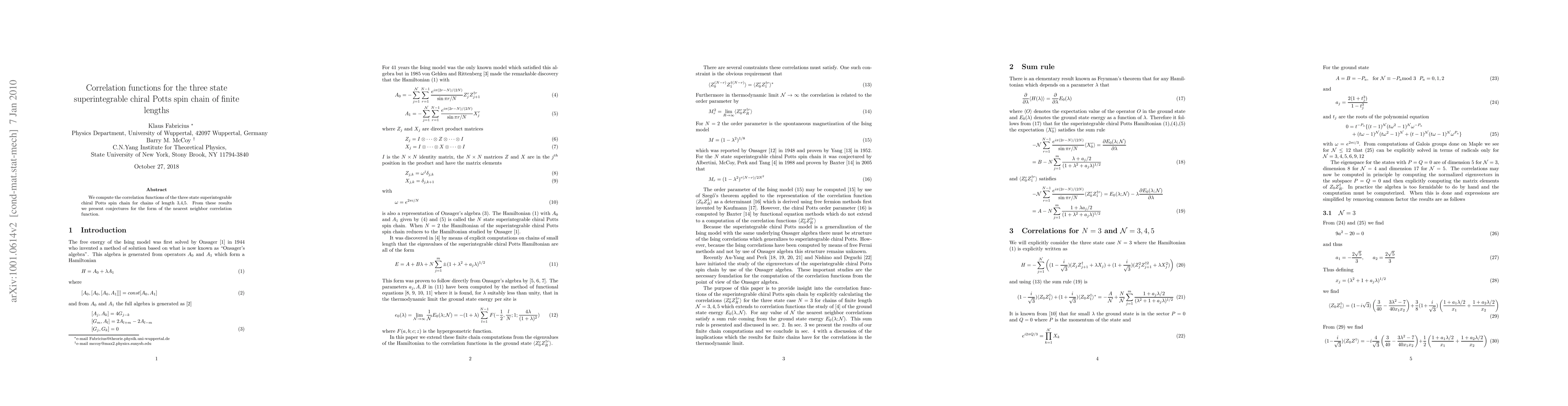 This paper computes the correlation functions for a three-state superintegrable chiral Potts spin chain of finite lengths (3, 4, 5) and proposes conjectures regarding the form of the nearest neighbor correlation function based on these results.