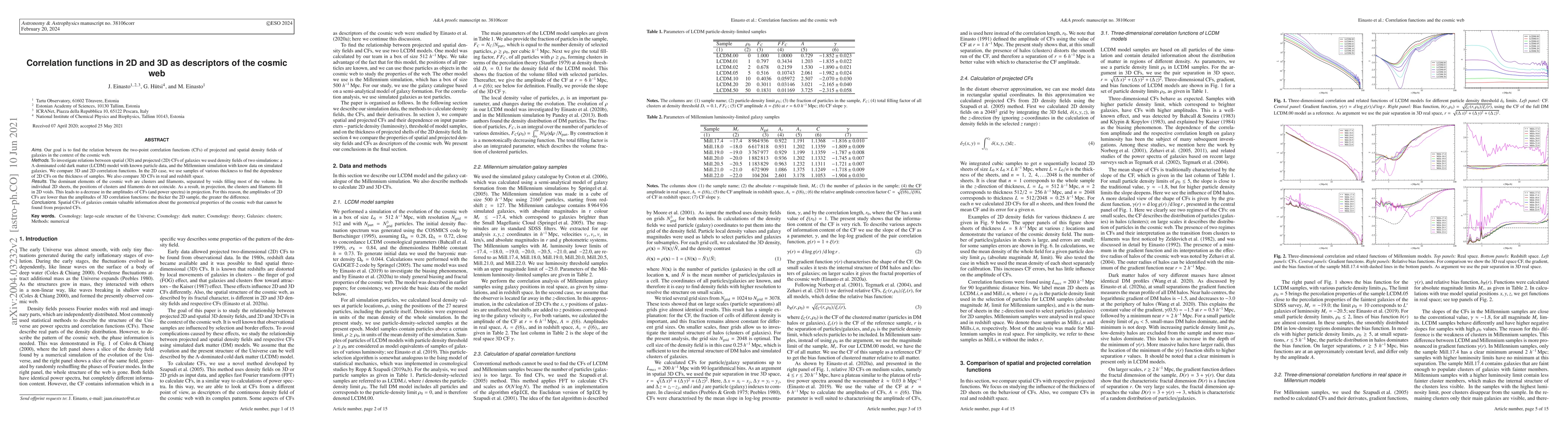 A study compared 2D and 3D correlation functions of galaxy density fields to understand the cosmic web, finding that spatial CFs provide valuable information about the cosmic web's geometry.