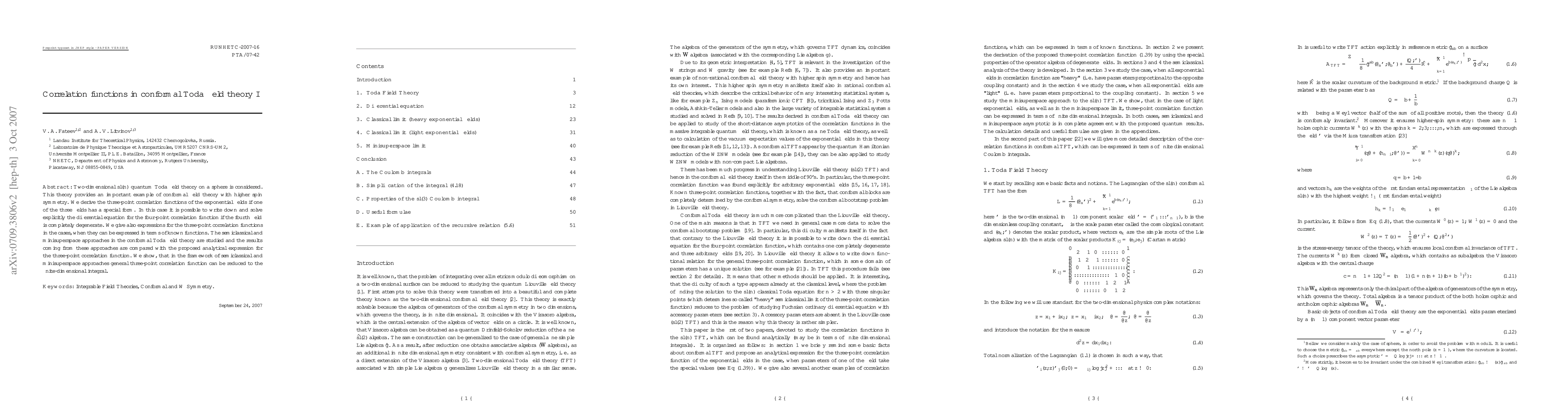 Two-dimensional sl(n) quantum Toda field theory on a sphere is considered. This theory provides an important example of conformal field theory with higher spin symmetry. We derive the three-point correlation functions of the exponential fields if one of the three fields has a special form. In this case it is possible to write down and solve explicitly the differential equation for the four-point correlation function if the fourth field is completely degenerate. We give also expressions for the three-point correlation functions in the cases, when they can be expressed in terms of known functions. The semiclassical and minisuperspace approaches in the conformal Toda field theory are studied and the results coming from these approaches are compared with the proposed analytical expression for the three-point correlation function. We show, that in the framework of semiclassical and minisuperspace approaches general three-point correlation function can be reduced to the finite-dimensional integral.