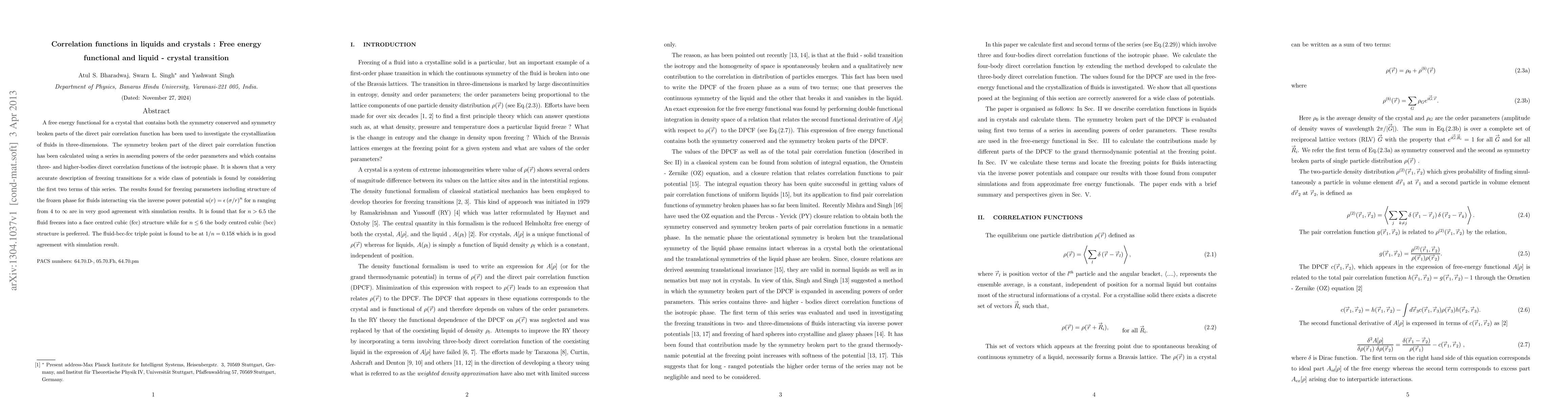 This paper develops a free energy functional to study the crystallization of three-dimensional fluids, showing accurate predictions of freezing transitions and phase structures for inverse power potentials. It finds that fluids with n > 6.5 freeze into face-centered cubic (fcc) structures, while n ≤ 6 prefer body-centered cubic (bcc) structures, with a triple point at 1/n = 0.158.