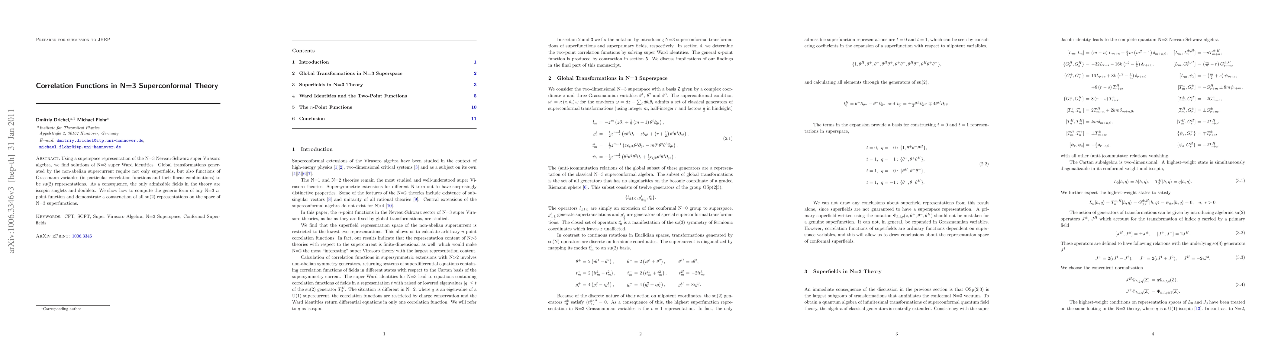 Researchers in N=3 Superconformal Theory found that only isospin singlets and doublets can exist as fields due to global transformations requiring functions of Grassmann variables. They also demonstrated how to compute generic forms of n-point functions and constructed all su(2) representations on the space of N=3 superfunctions.