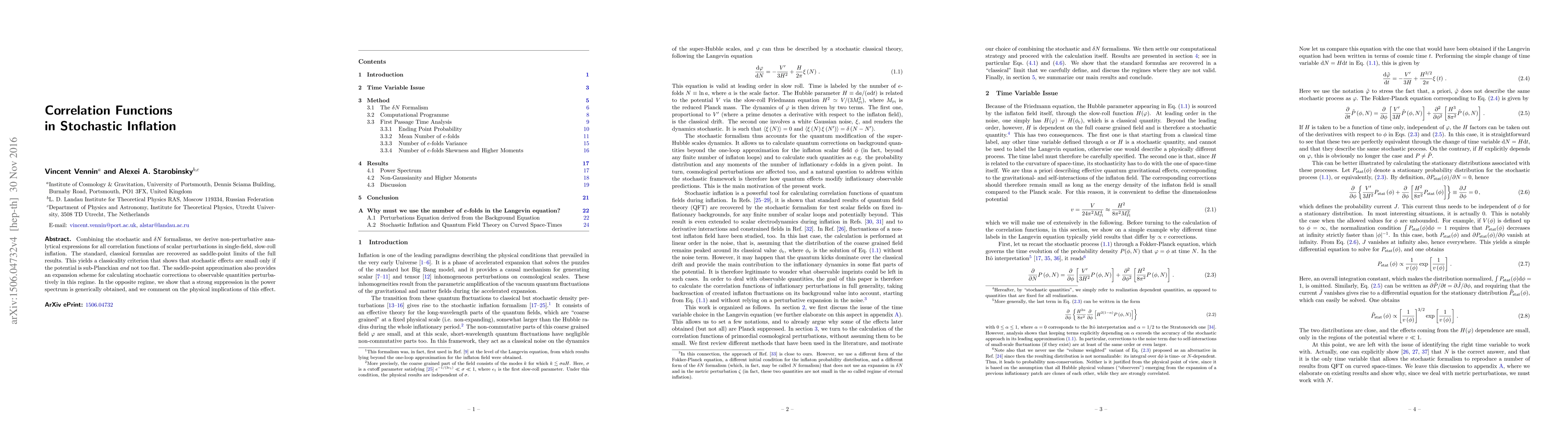 This paper develops analytical expressions for scalar perturbation correlation functions in single-field inflation, showing that stochastic effects are small only if the potential is sub-Planckian and not too flat, with implications for observable quantities and power spectrum.