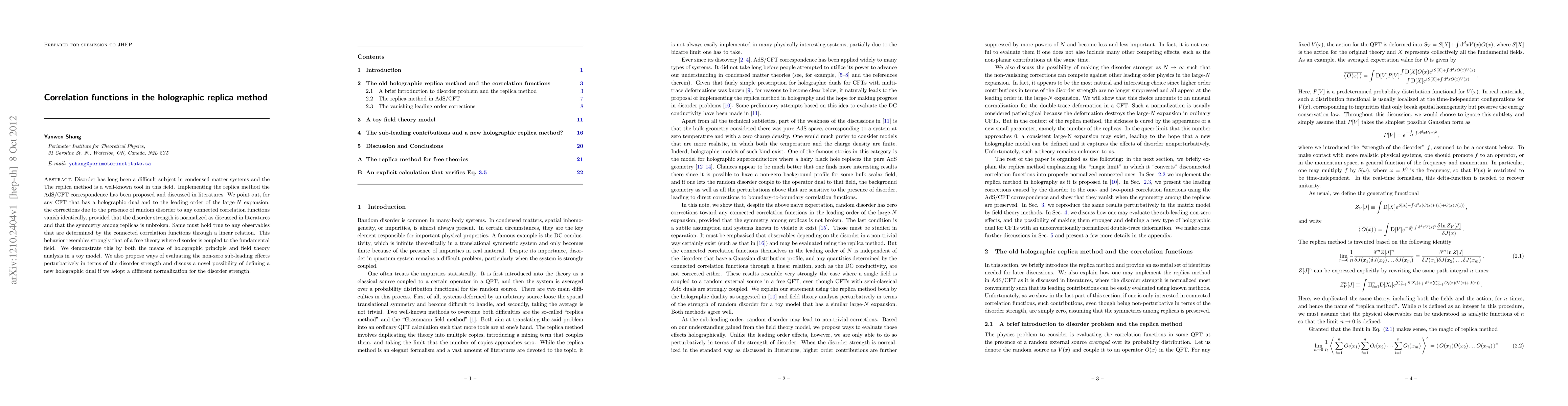 Disorder has long been a difficult subject in condensed matter systems and the The replica method is a well-known tool in this field. Implementing the replica method the AdS/CFT correspondence has been proposed and discussed in literatures. We point out, for any CFT that has a holographic dual and to the leading order of the large-N expansion, the corrections due to the presence of random disorder to any connected correlation functions vanish identically, provided that the disorder strength is normalized as discussed in literatures and that the symmetry among replicas is unbroken. Same must hold true to any observables that are determined by the connected correlation functions through a linear relation. This behavior resembles strongly that of a free theory where disorder is coupled to the fundamental field. We demonstrate this by both the means of holographic principle and field theory analysis in a toy model. We also propose ways of evaluating the non-zero sub-leading effects perturbatively in terms of the disorder strength and discuss a novel possibility of defining a new holographic dual if we adopt a different normalization for the disorder strength.