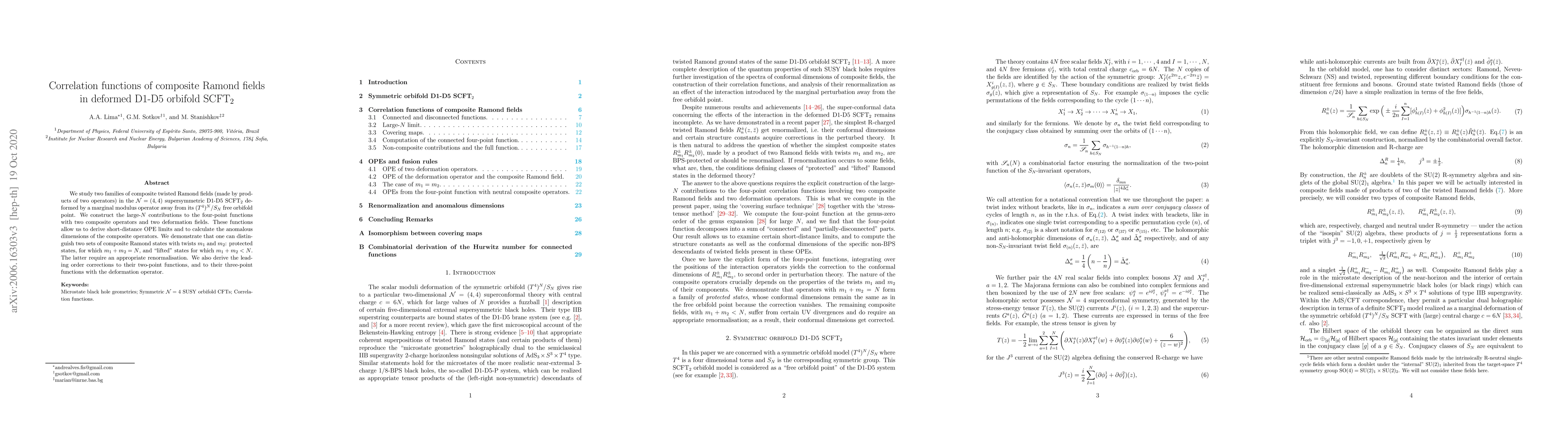 two operators) in the $\cal {N}=(4,4)$ supersymmetric D1-D5 SCFT$_2$ deformed