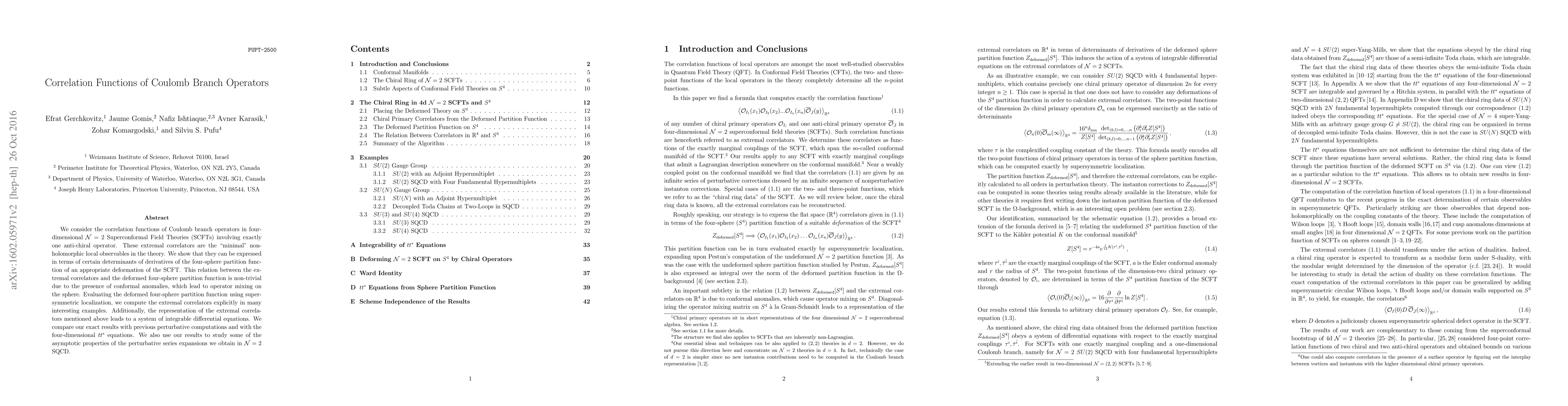 This paper examines correlation functions of Coulomb branch operators in four-dimensional N=2 Superconformal Field Theories and shows they can be computed using determinants of derivatives of the deformed four-sphere partition function, revealing a connection to integrable differential equations. The results are compared with previous perturbative calculations and the four-dimensional tt^* equations.