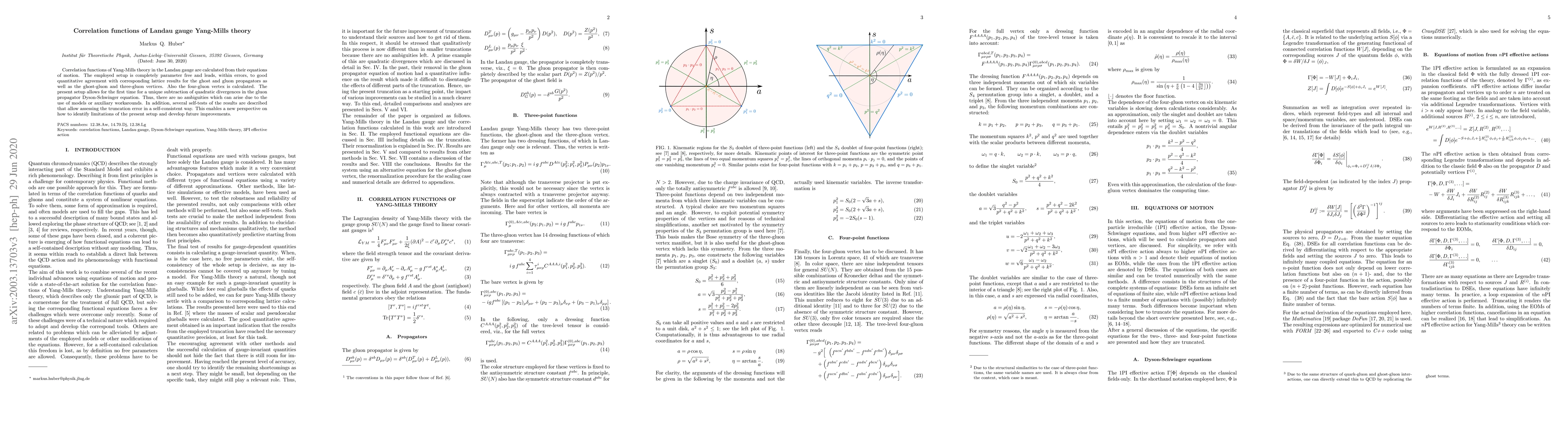 Researchers calculated correlation functions for Yang-Mills theory in Landau gauge, achieving quantitative agreement with lattice results and enabling unique subtraction of quadratic divergences. This approach provides a new perspective on improving the setup and identifying its limitations.