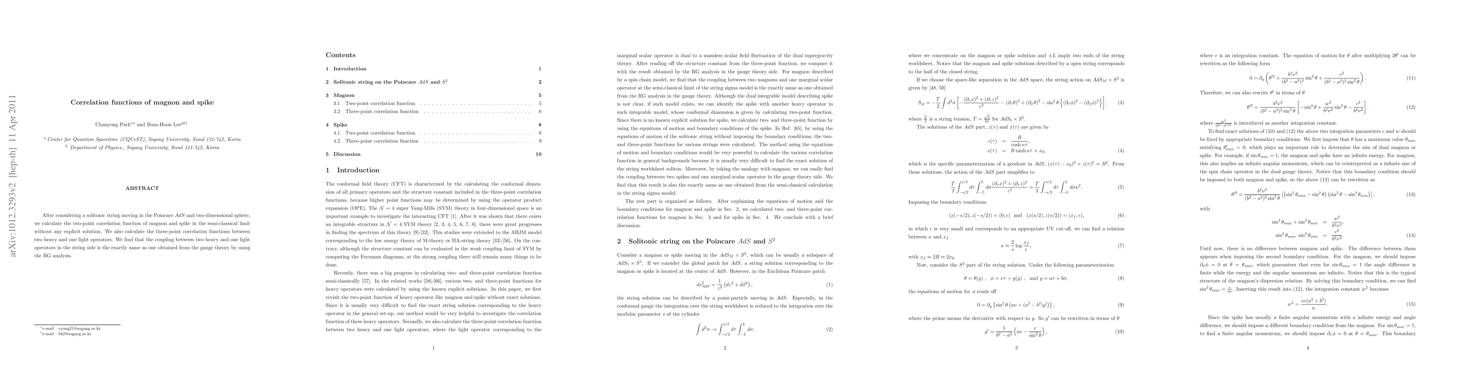 After considering a solitonic string moving in the Poincare $AdS$ and two-dimensional sphere, we calculate the two-point correlation function of magnon and spike in the semi-classical limit without any explicit solution. We also calculate the three-point correlation functions between two heavy and one light operators. We find that the coupling between two heavy and one light operators in the string side is the exactly same as one obtained from the gauge theory by using the RG analysis.