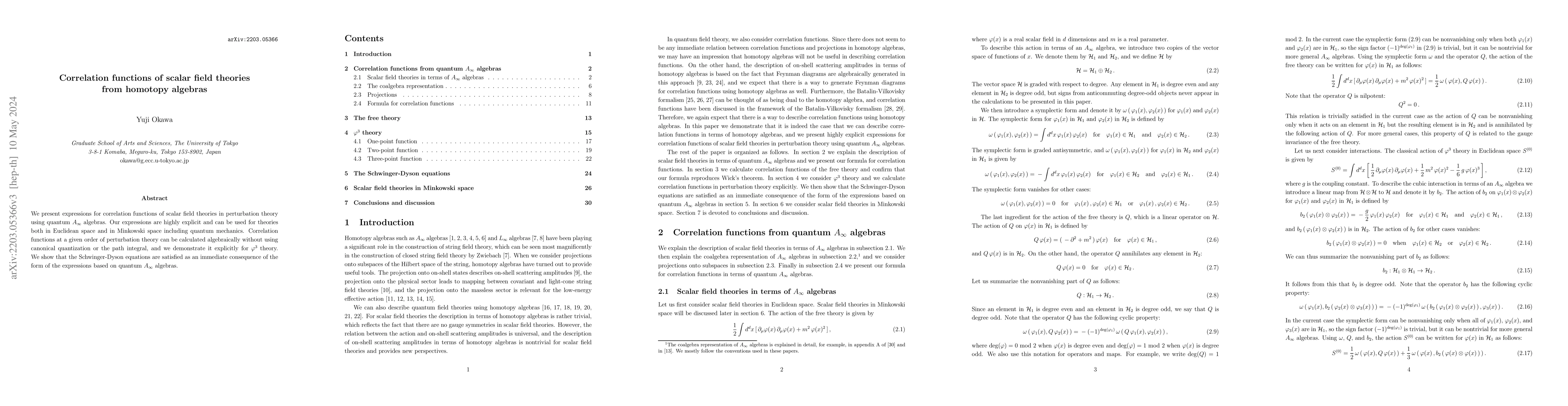 The paper provides explicit expressions for scalar field theory correlation functions using quantum $A_\infty$ algebras, allowing algebraic calculations in perturbation theory without canonical quantization or path integrals, and demonstrates the satisfaction of Schwinger-Dyson equations for $\varphi^3$ theory.