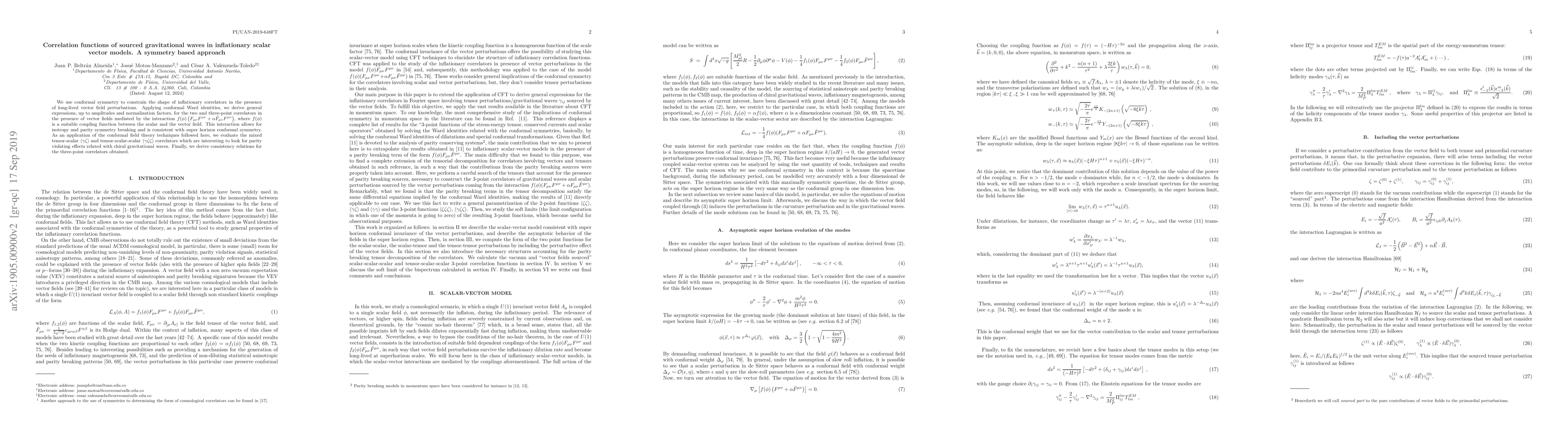 This paper employs conformal symmetry to derive expressions for inflationary correlators in scalar-vector models, focusing on vector field perturbations. It uses conformal Ward identities to establish general forms for two and three-point correlators, revealing potential parity-breaking effects in chiral gravitational waves.