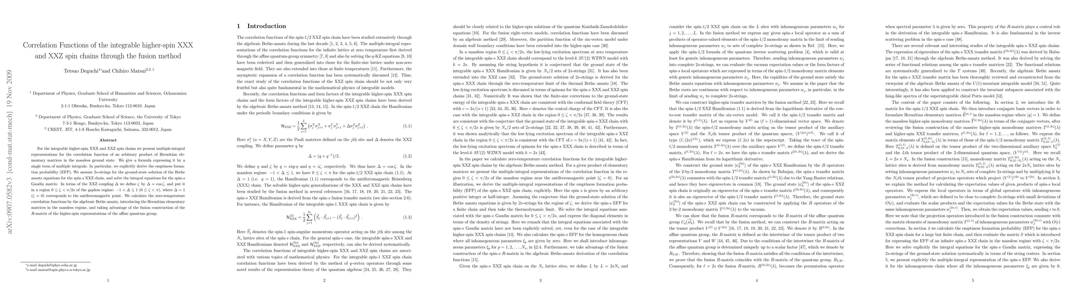 This paper presents multiple-integral representations for correlation functions in integrable higher-spin XXX and XXZ spin chains, specifically deriving the emptiness formation probability using the fusion method and algebraic Bethe ansatz. The study focuses on the gapless regime, defining $\zeta$ in terms of the XXZ coupling $\Delta$ and calculating zero-temperature correlation functions.