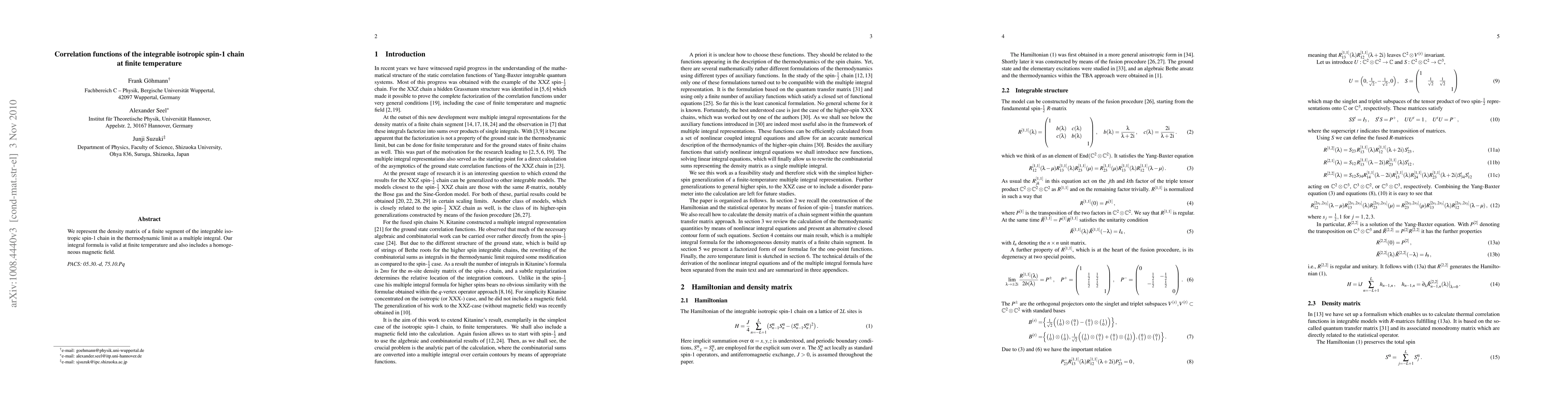 Summary: This paper presents a multiple integral representation for the density matrix of a finite segment of an integrable isotropic spin-1 chain in the thermodynamic limit, valid at finite temperature and under a homogeneous magnetic field. The formula provides insights into the system's correlation functions at non-zero temperatures.