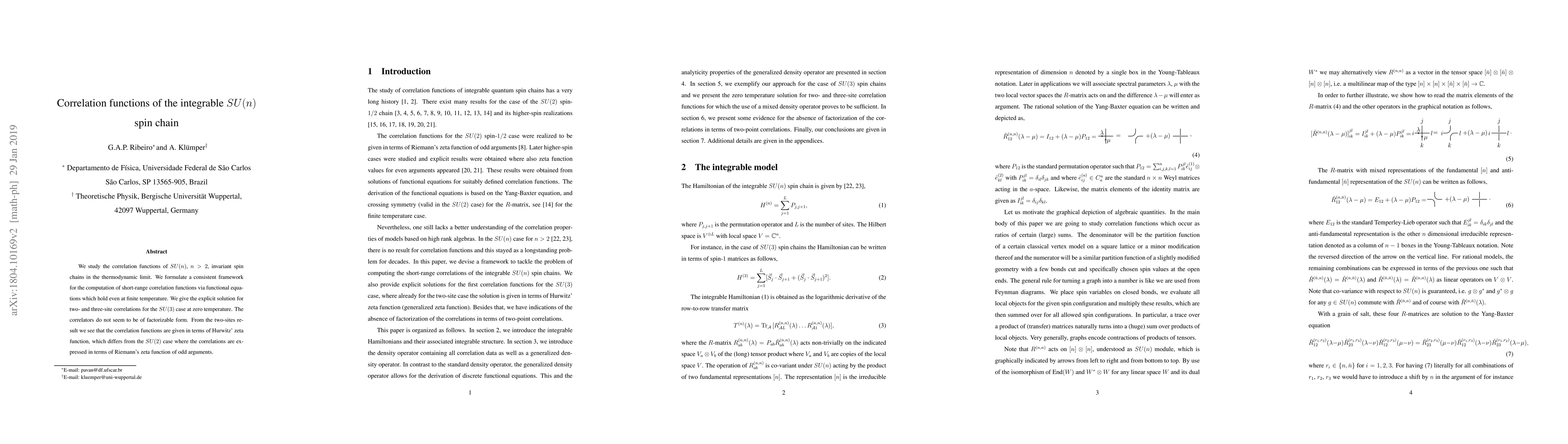 This paper investigates the correlation functions of $SU(n)$ spin chains ($n>2$) in the thermodynamic limit, presenting a framework for computing short-range correlation functions through functional equations valid at finite temperatures. It provides explicit solutions for two- and three-site correlations in the $SU(3)$ case at zero temperature, revealing non-factorizable forms and the use of Hurwitz' zeta function instead of Riemann's zeta function seen in the $SU(2)$ case.