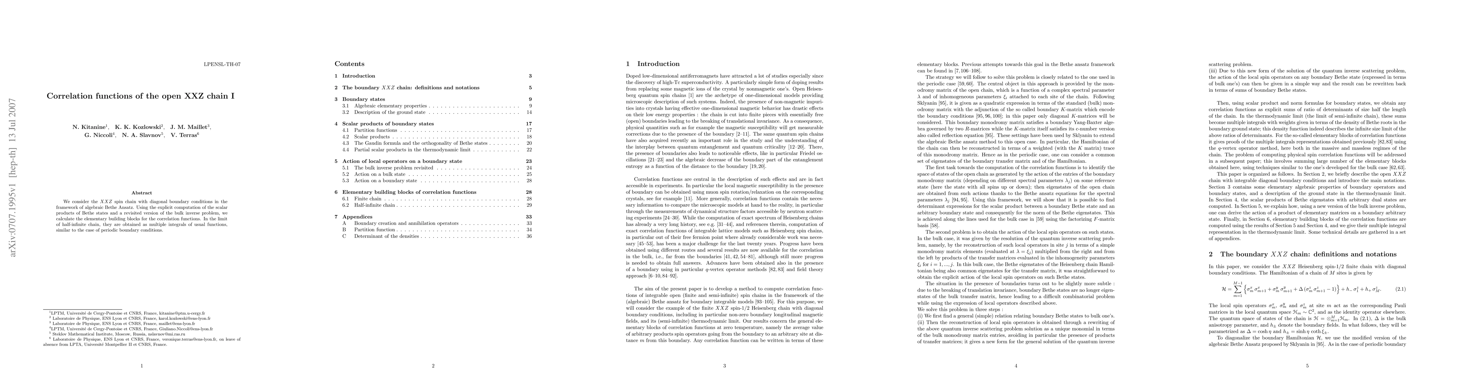 This paper calculates correlation functions for the open XXZ spin chain using algebraic Bethe Ansatz, deriving multiple integrals of standard functions in the half-infinite chain limit, akin to periodic boundary conditions. The study employs explicit scalar products of Bethe states and a revised bulk inverse problem.