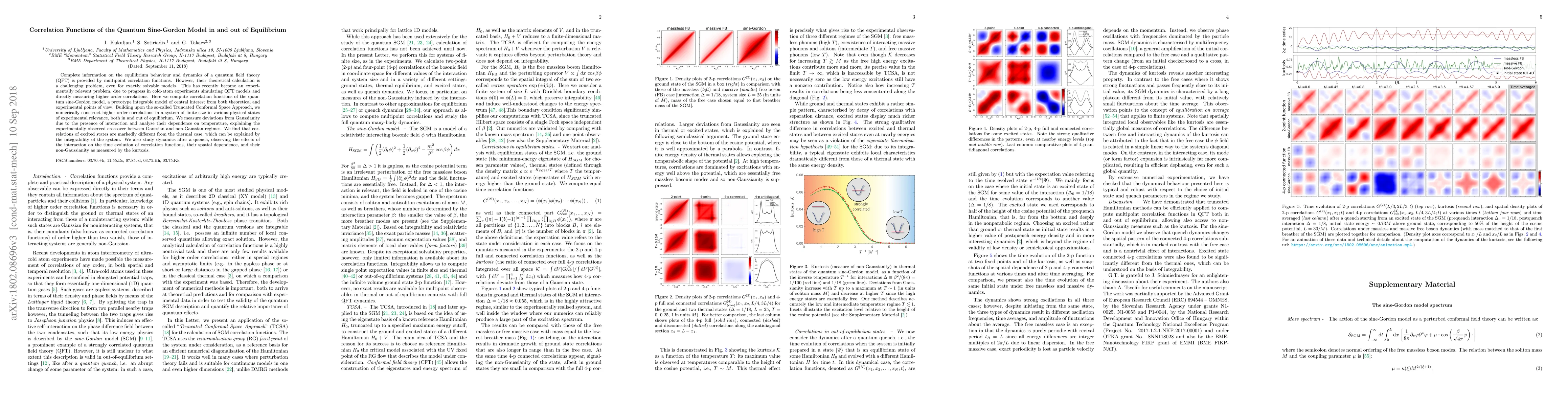 Researchers calculated correlation functions of the quantum sine-Gordon model, finding that excited states differ from thermal cases due to integrability, and that interactions affect dynamics and non-Gaussianity.