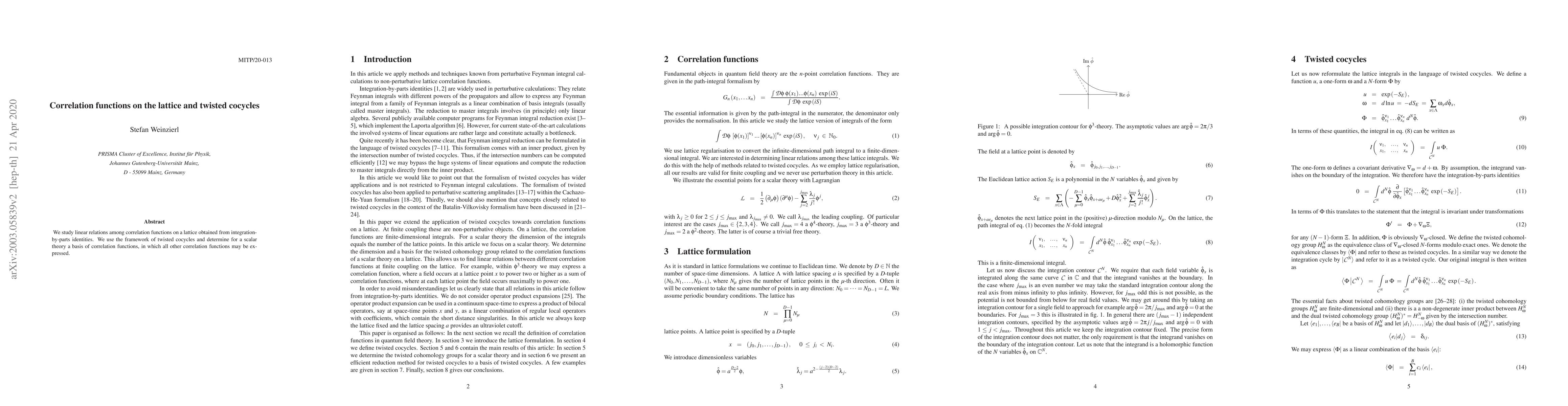 This paper investigates linear relationships among correlation functions on a lattice derived from integration-by-parts identities, employing the framework of twisted cocycles to establish a basis for scalar theory correlation functions.