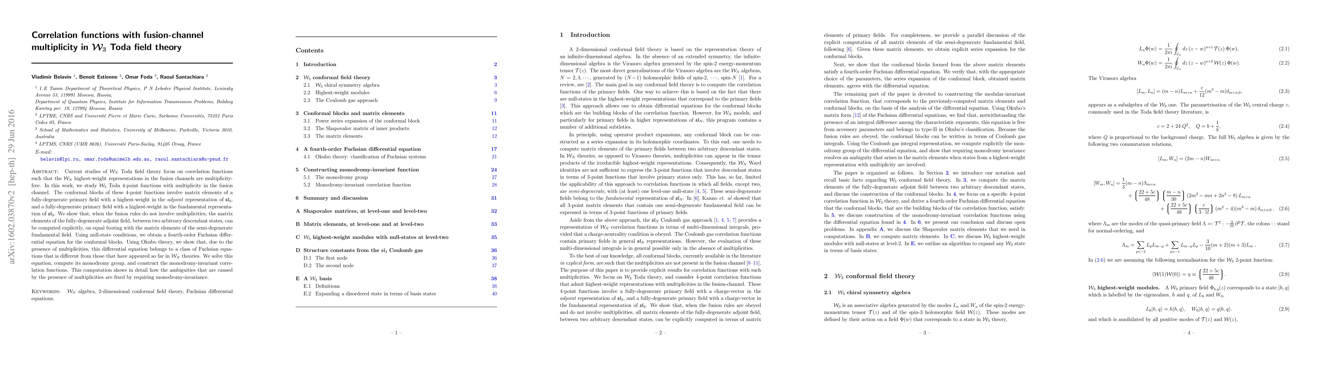 The study employs representation theory and conformal field theory techniques, focusing on W3 Toda field theory and analyzing 4-point correlation functions with fusion channel multiplicity.
