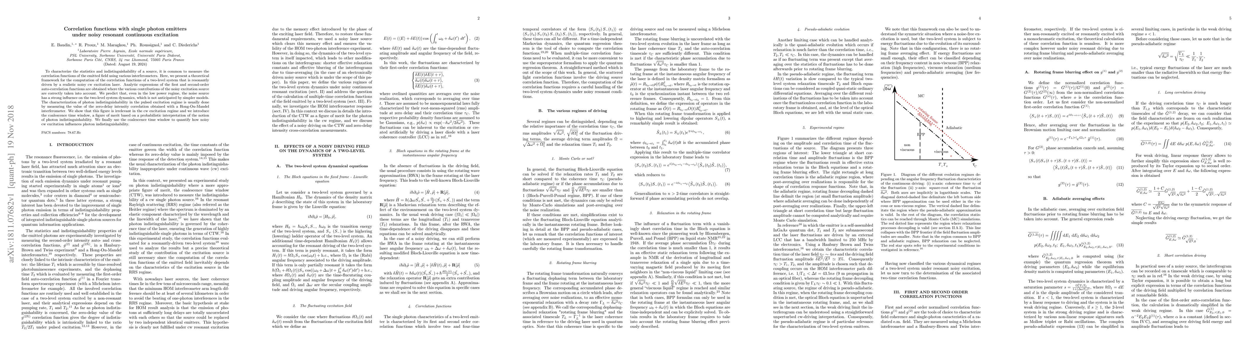 This paper develops a theoretical framework to compute the correlation functions of a two-level system under noisy continuous wave excitation, revealing the significant impact of noise on system dynamics. It introduces the coalescence time window as a new metric to quantify photon indistinguishability under such conditions, showing it to be more relevant than the zero-delay intensity correlation in continuous excitation scenarios.