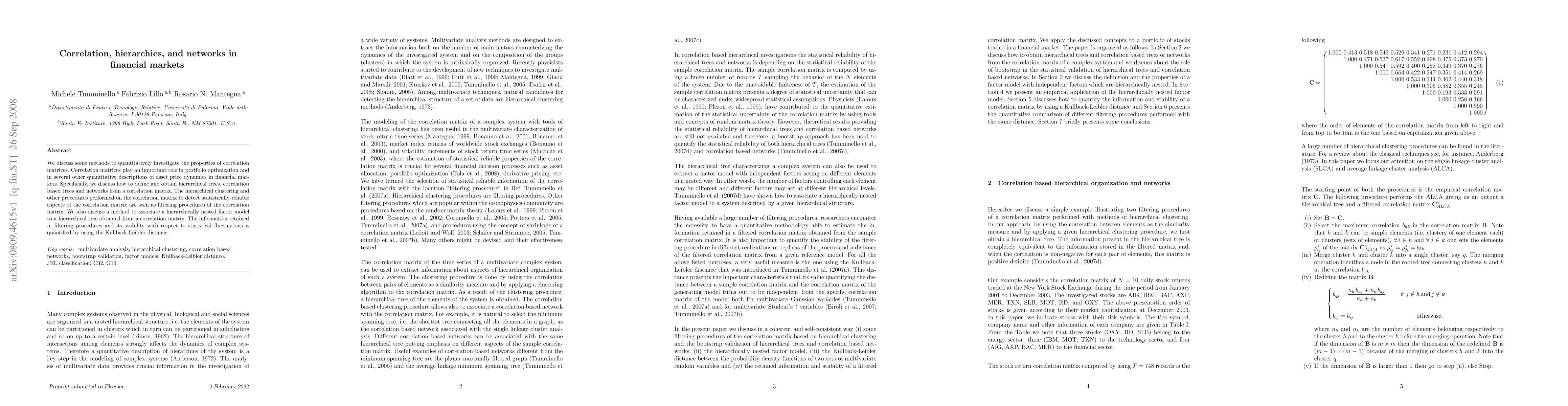 This paper explores methods to quantitatively analyze correlation matrices in financial markets, focusing on constructing hierarchical trees and networks from these matrices. It also introduces a method to associate a hierarchically nested factor model with these trees, assessing stability using the Kullback-Leibler distance.