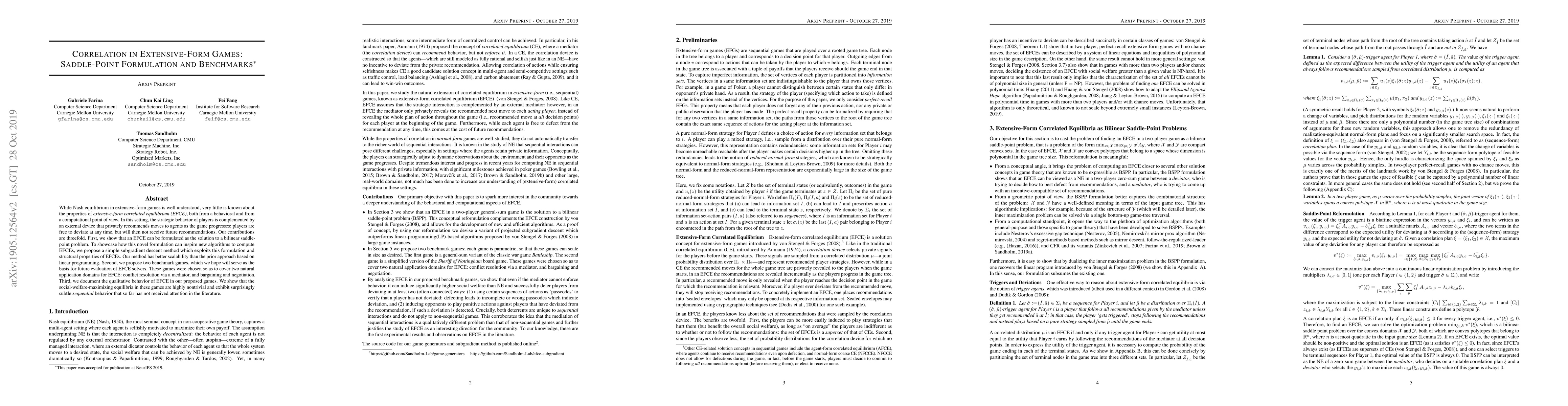 The paper presents a novel saddle-point formulation for Extensive-Form Correlated Equilibrium (EFCE), offering a more scalable computation method than previous linear programming approaches. It introduces benchmark games for EFCE evaluation in conflict resolution and bargaining scenarios. The research uncovers complex, subtle sequential behaviors in social-welfare-maximizing EFCE, previously overlooked.
