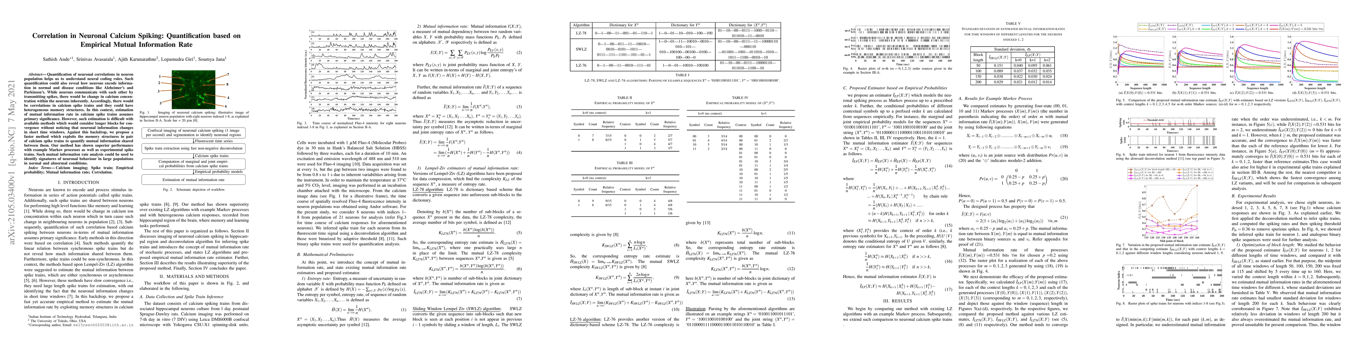 This paper proposes a novel method to quantify neuronal correlations based on empirical mutual information rate in calcium spike trains, aiming to better understand neural coding rules and identify signatures of neuronal behavior in both normal and disease conditions. The proposed method efficiently estimates mutual information by leveraging memory structures in spike trains, demonstrating superior performance compared to existing methods.