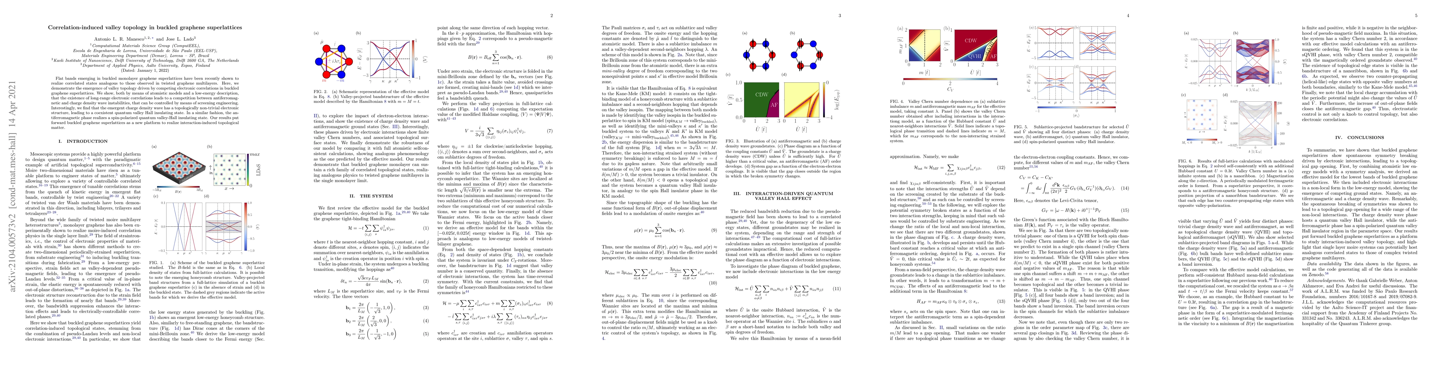 This paper demonstrates that buckled graphene superlattices, featuring flat bands, exhibit valley topology driven by electronic correlations, leading to topologically non-trivial charge density waves and antiferromagnetic phases, potentially enabling interaction-induced topological quantum states. The study suggests these materials could serve as platforms for realizing novel topological matter.