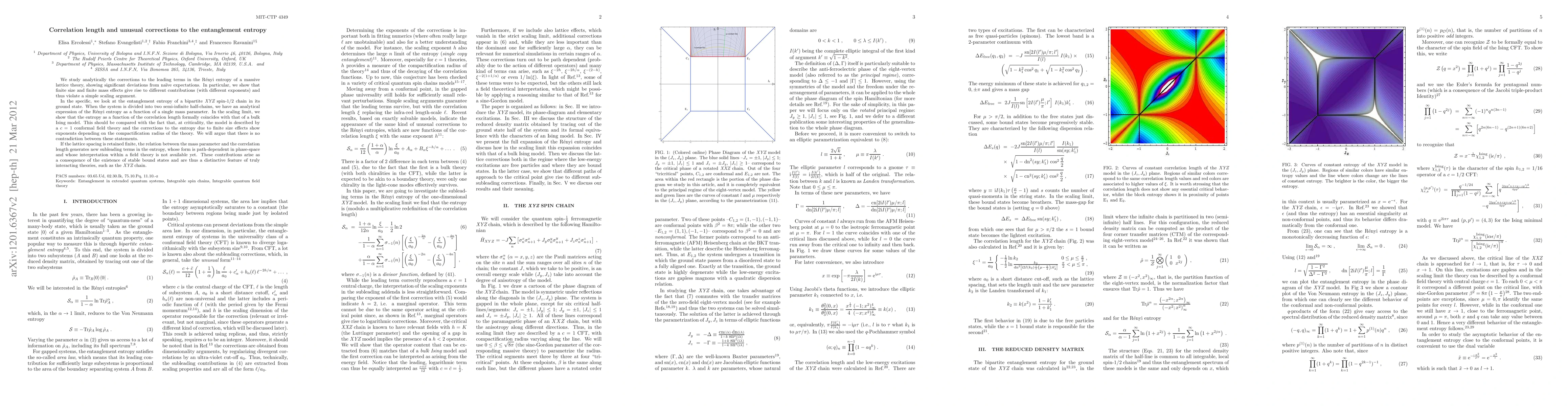 We study analytically the corrections to the leading terms in the Renyi entropy of a massive lattice theory, showing significant deviations from naive expectations. In particular, we show that finite size and finite mass effects give rise to different contributions (with different exponents) and thus violate a simple scaling argument. In the specific, we look at the entanglement entropy of a bipartite XYZ spin-1/2 chain in its ground state. When the system is divided into two semi-infinite half-chains, we have an analytical expression of the Renyi entropy as a function of a single mass parameter. In the scaling limit, we show that the entropy as a function of the correlation length formally coincides with that of a bulk Ising model. This should be compared with the fact that, at criticality, the model is described by a c=1 Conformal Field Theory and the corrections to the entropy due to finite size effects show exponents depending on the compactification radius of the theory. We will argue that there is no contradiction between these statements. If the lattice spacing is retained finite, the relation between the mass parameter and the correlation length generates new subleading terms in the entropy, whose form is path-dependent in phase-space and whose interpretation within a field theory is not available yet. These contributions arise as a consequence of the existence of stable bound states and are thus a distinctive feature of truly interacting theories, such as the XYZ chain.